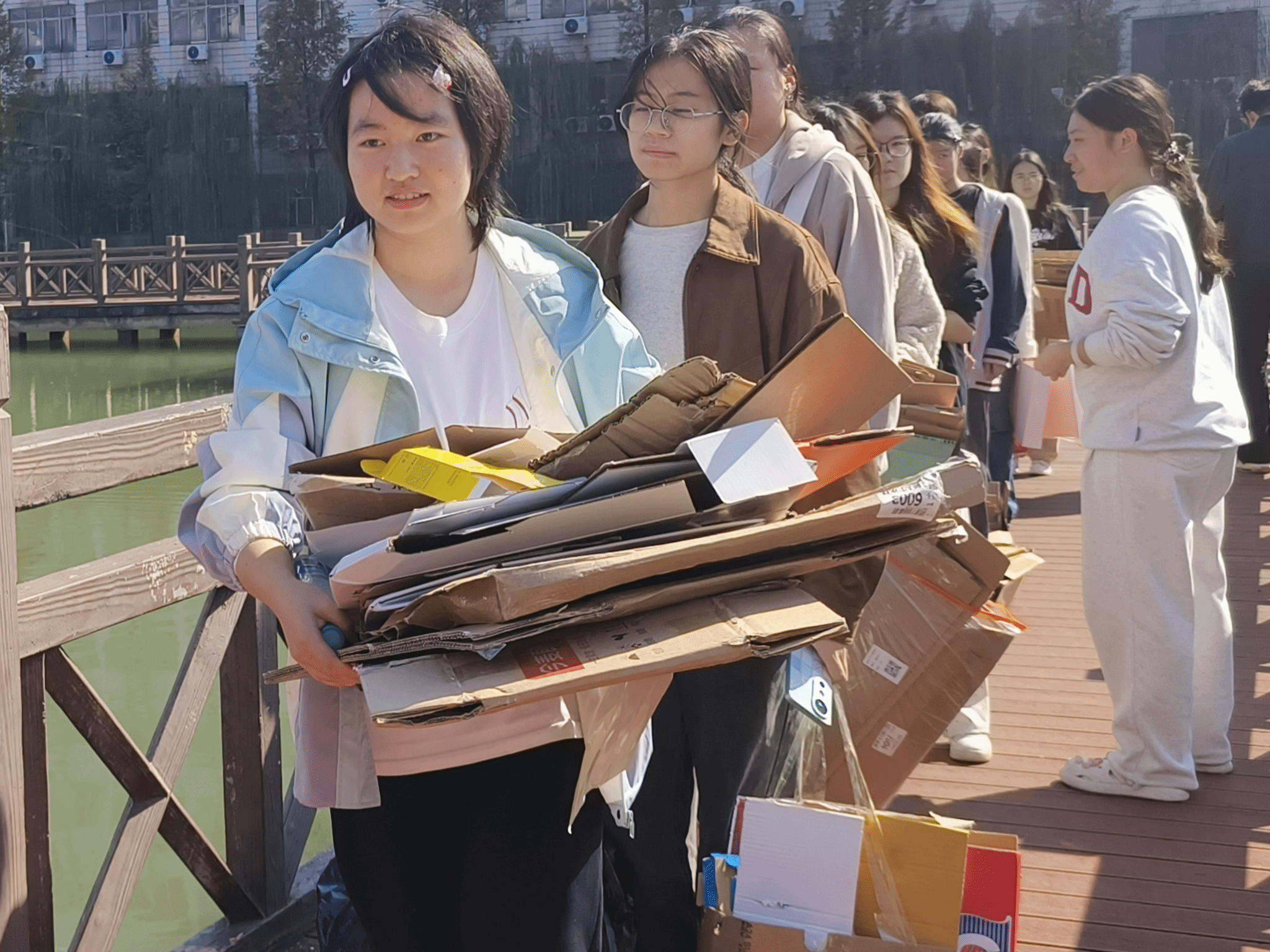 本网讯(通讯员 鲁涵 陈美艳 许甲)近日,化学与生物工程学院的青年志愿者们,为全校同学的快递包装盒策划了一场特别的绿色“旅行”,让堆积如山的纸箱和塑料瓶不再是宿舍的负担,而是可以循环利用的“宝藏”。