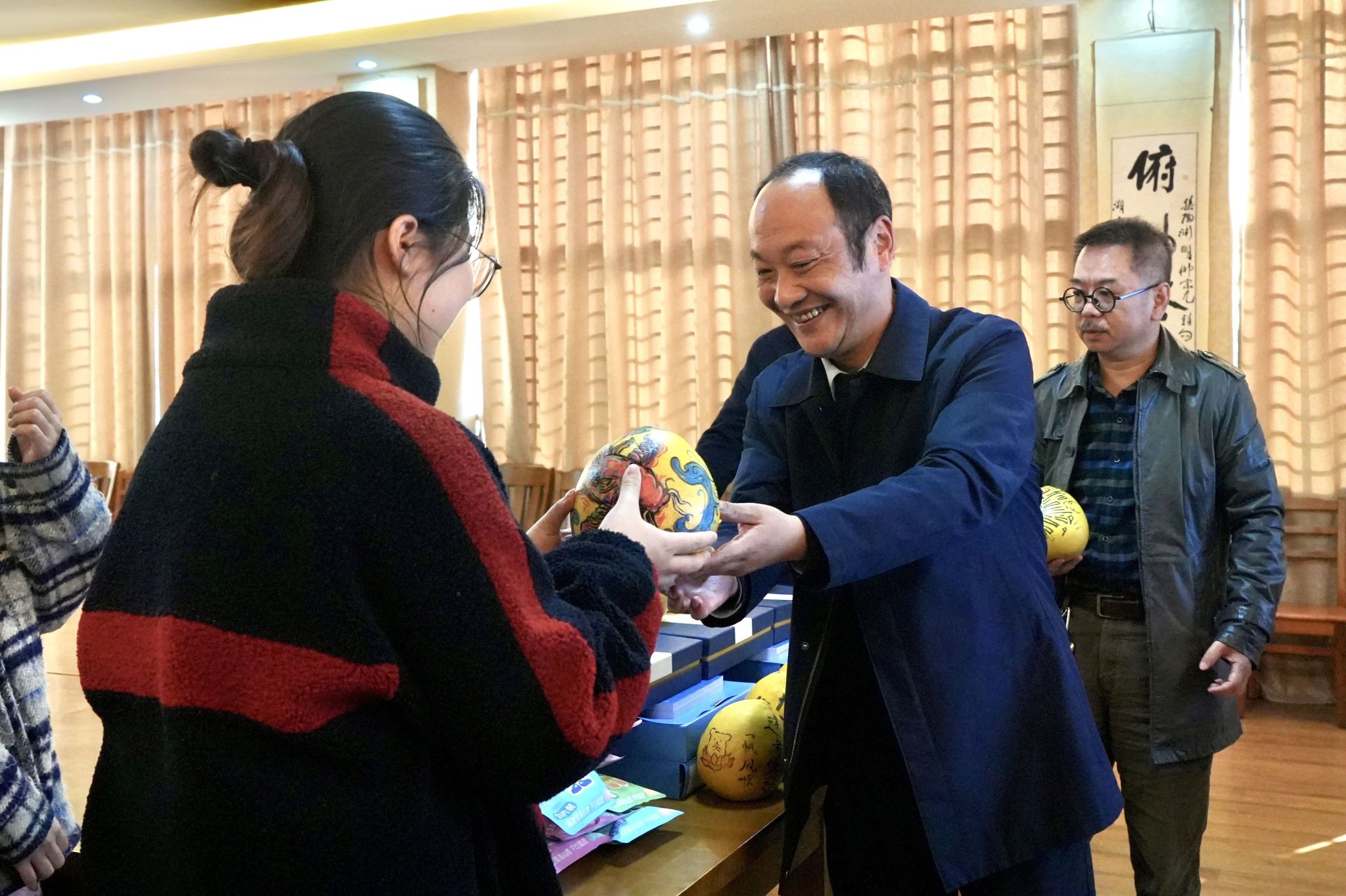 本网讯(通讯员 唐天田)12月9日,美术与艺术设计学院举办“研途‘柚’光,逐梦有方”考研关怀活动。校党委副书记、组织部部长杨涛,院系领导、辅导员及班主任共同参与,为2026届考研学子送上暖心鼓励。