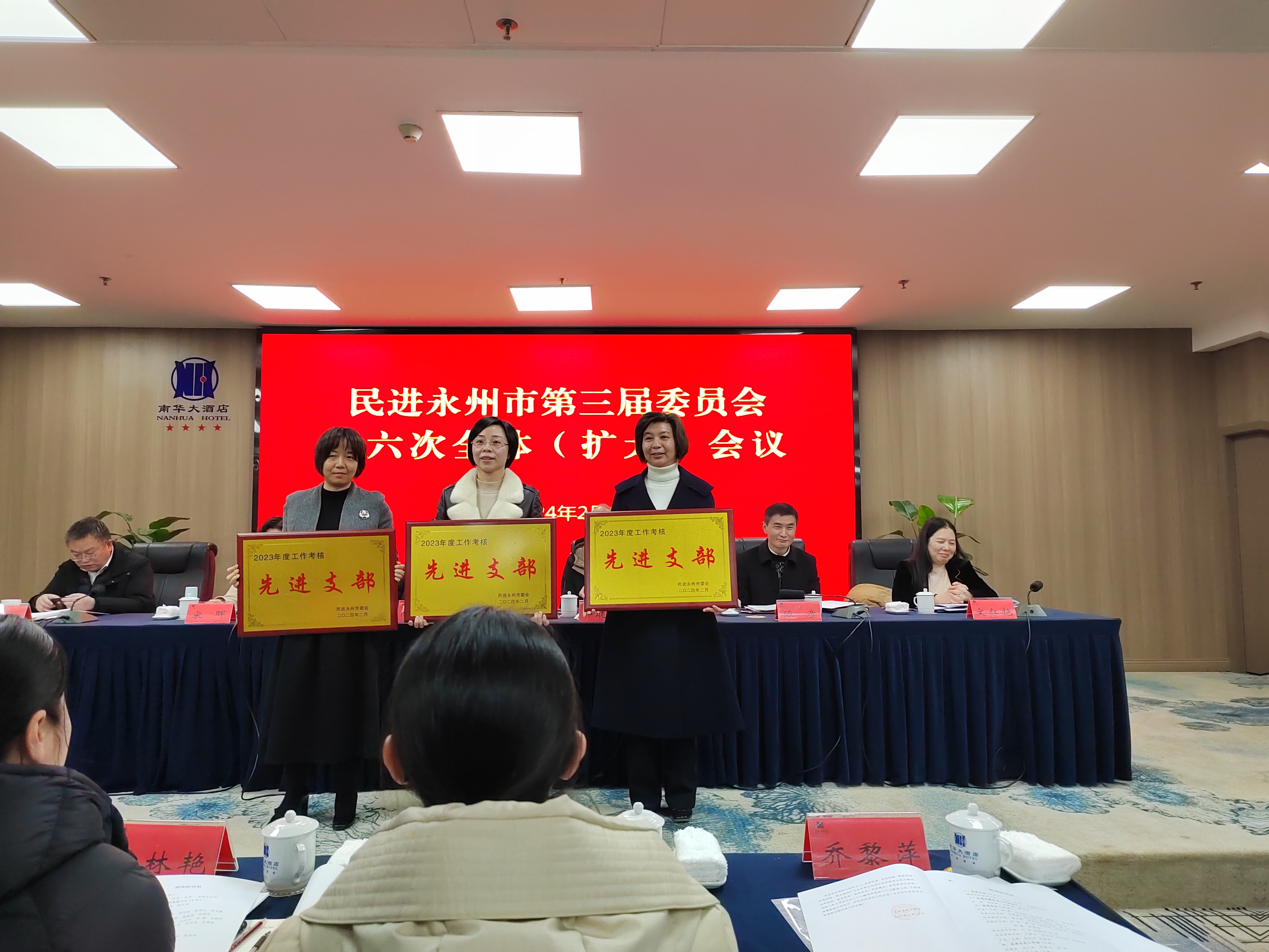 本网讯(通讯员 李焕品)2月29日上午,民进永州市委会三届六次全体(扩大)会议在冷水滩举行。民进beat365中文官方网站支部在2023年度市委会支部考核中位居第一,被评为先进支部。何丽萍被评为社情民意信息工作先进个人,李焕品被评为优秀会务工作者,王豪才、包红光、李小雨、蒋玮玮被评为优秀会员,包红光作为优秀代表发言。