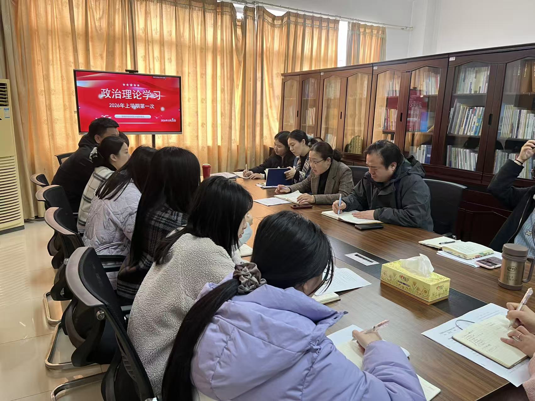 为筑牢政治忠诚根基、强化师德师风红线意识,计划财务处于3月26日下午在行政楼427会议室召开2026年第一次政治理论学习会议暨师德师风警示教育会议。计划财务处全体人员参加会议。会议由计划财务处处长高树琴主持。