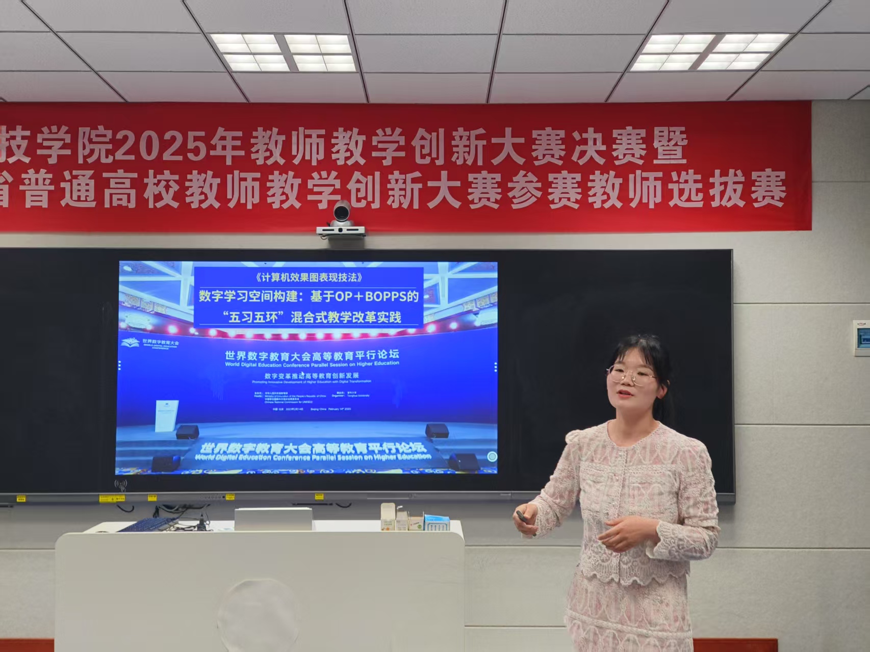 本网讯(通讯员 吴潭)4月11日下午,beat365官网举行2025年教师教学创新大赛校级决赛暨省级比赛选拔赛。经过各学院初赛推荐,组织专家组对竞赛文档盲审,共有8个教学团队参加了校内决赛,每位比赛选手进行12分钟的教学创新汇报,之后评委进行现场提问。