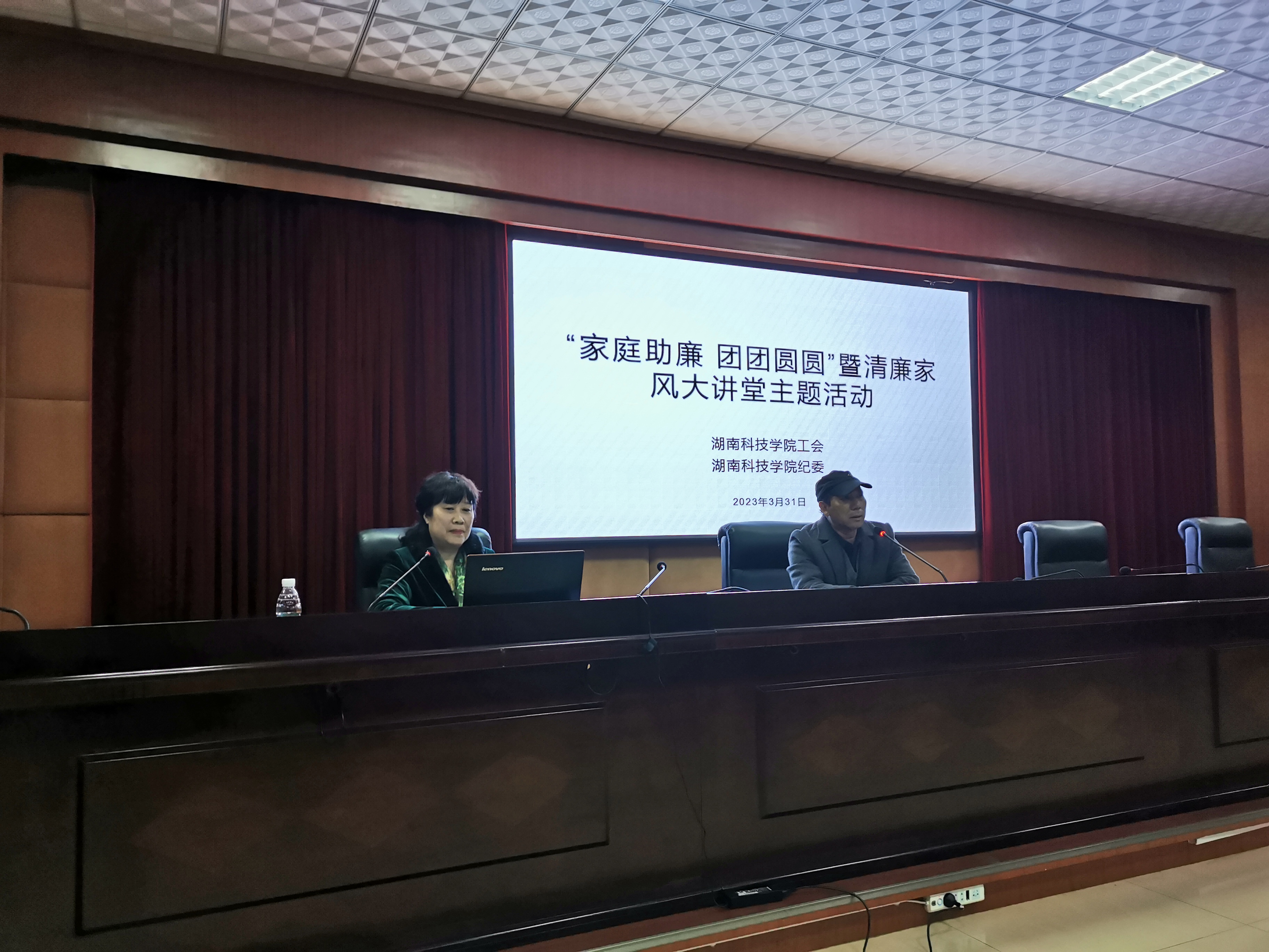 本网讯(通讯员覃小明)3月31日晚,学校工会、纪委联合举行“家庭助廉 团团圆圆” 暨清廉家风大讲堂主题教育活动,全校处级领导干部配偶60余人参加。活动邀请学校党委组织部原部长卢桂珍教授担任主讲人,工会常务副主席潘剑锋主持活动。