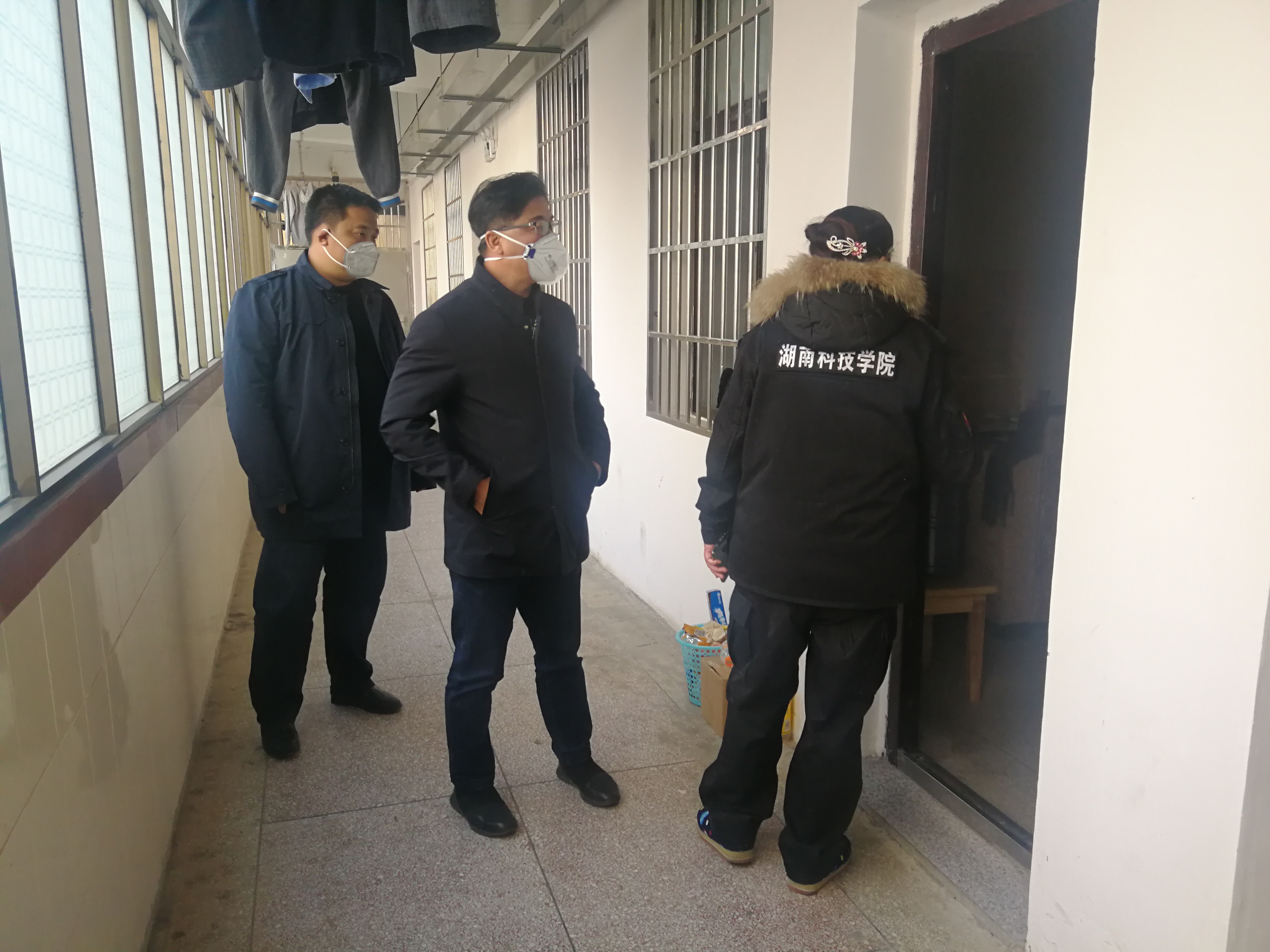 彭立威一行先后来到东大门值守点、校医院、办公楼值班室、国际生宿舍以及流动卡哨等地,详细了解各单位正职报到、带班值守以及进出学校人员控制和体温检测情况,询问了解居家观察和群防群治措施落实情况,走访看望在校国际生的生活和日常防控情况,实地察看进出校园道路封闭情况等。