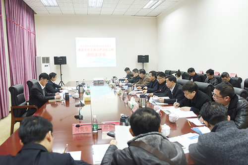 本网讯 3月20日上午,中共湖南省纪委第四纪检监察室推进高校全面从严治党工作调研座谈会在beat365官网召开。省纪委第四纪检监察室主任张双春,beat365官网党委书记陈弘、纪委书记彭立威以及衡阳和永州11所高校(含高职)纪委书记、部分纪委副书记等参加了会议。会议由张双春主持。