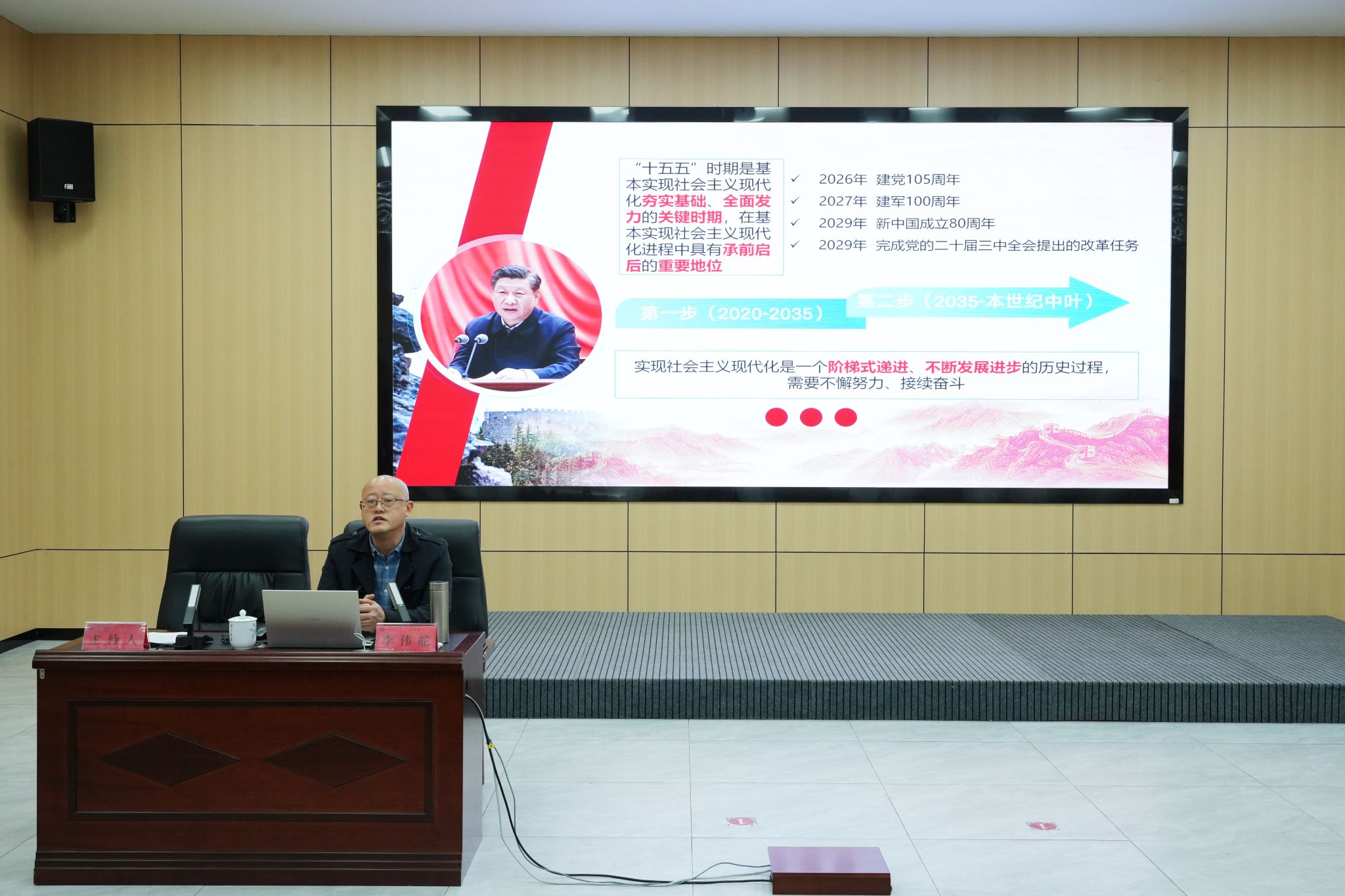 报告会上,李伟舵以《夯实基础,全面发力,奋力开创中国式现代化建设新局面》为题,对党的二十届四中全会精神进行了系统宣讲和深入阐释。他紧扣全会相关部署,从四个方面展开解读:一是准确把握“十五五”时期我国发展所处的历史方位,明确阶段特征;二是深刻领会“十五五”时期经济社会发展的指导方针,明确前进方向;三是全面贯彻“十五五”时期的战略任务和重大举措,厘清实践路径;四是扎实推动二十届四中全会精神落地生根的实践要求,强化落实抓手。报告紧密结合湖南省贯彻落实的部署要求,内容条理清晰、逻辑严谨,为全校党员干部深刻领会全会核心要义、科学谋划学校发展新篇章提供了有力指导。
