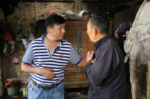 图为向纹(左)在贫困户家中讲解扶贫政策。