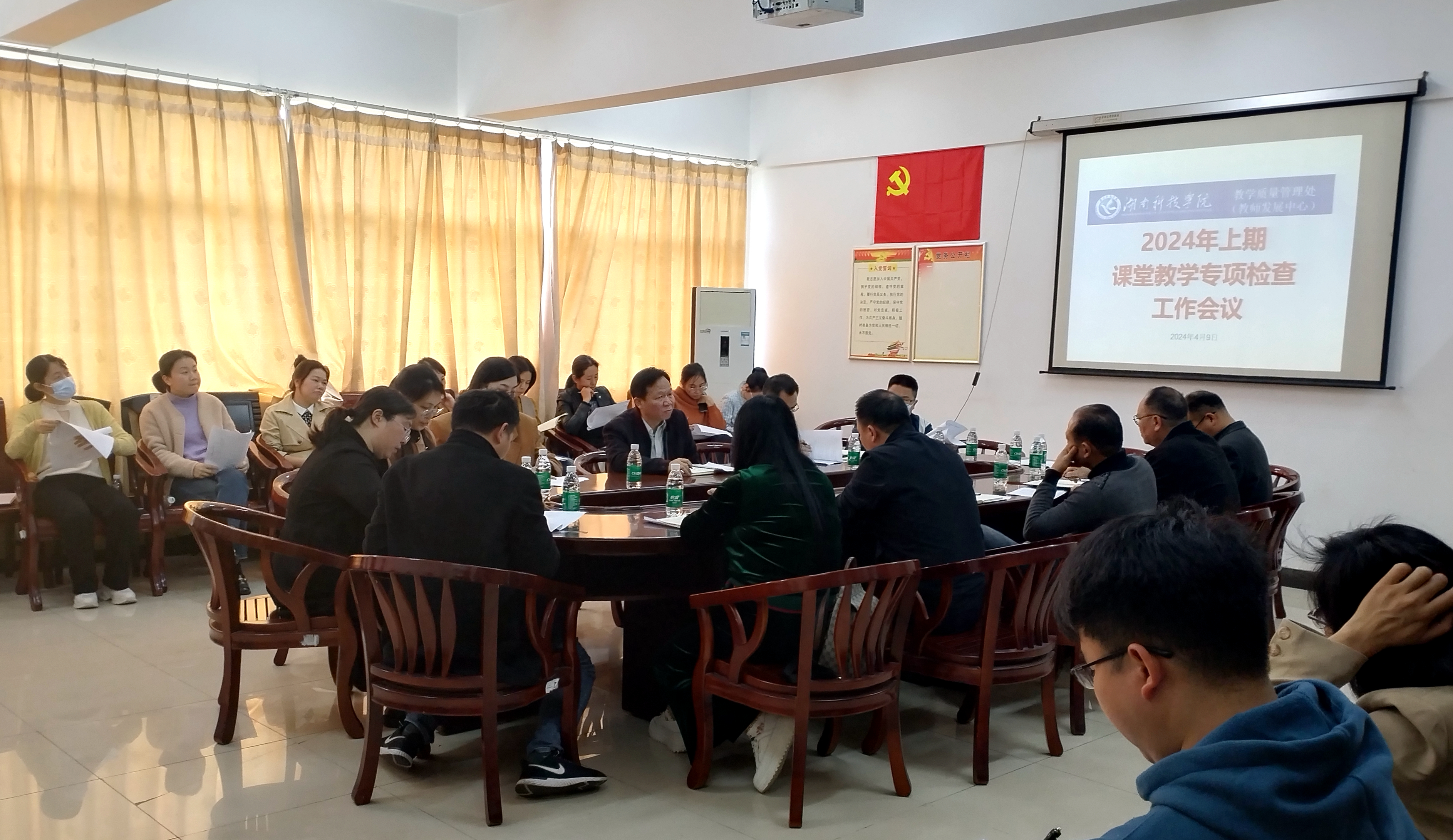 为进一步规范教学管理,提高教学质量,优化教风学风,4月9日下午,beat365官网在行政楼413会议室召开2024年上期课堂教学专项检查工作会议。教学学院主管教学工作副院长、教务办人员及全体教学专项检查工作人员参加会议。