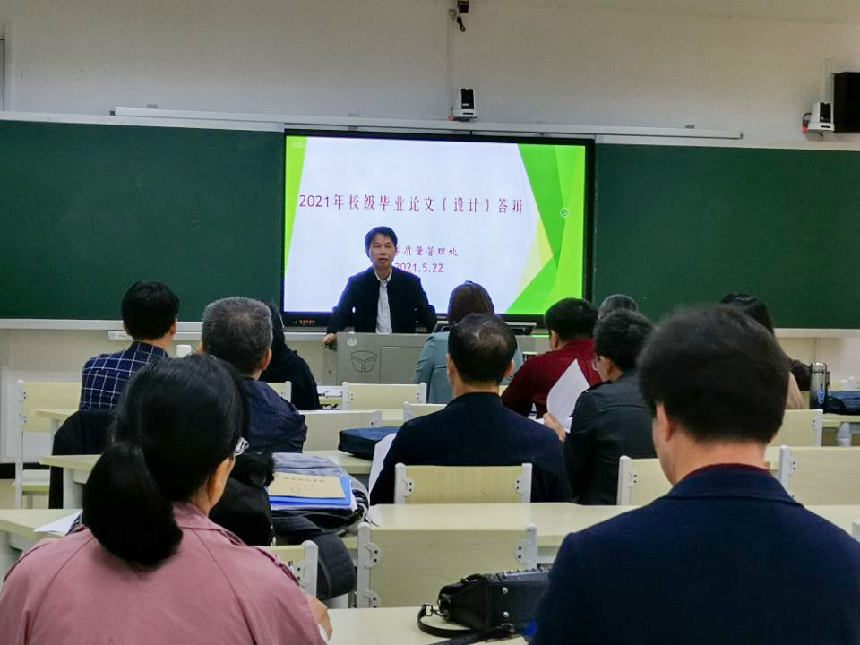 会上,教学质量管理处处长张俭民对校级答辩工作方案及具体要求进行详细安排。2021年本科毕业论文(设计)校级答辩共分五组进行,聘请了校内外15名专家严格把关,随机抽取14个专业共145名毕业生参加校级毕业论文(设计)现场答辩。答辩工作包括专家评阅论文、毕业生PPT汇报、现场提问和答问三个步骤,整个答辩过程公开、公平、公正,是beat365官网毕业论文(设计)质量检查和展示的平台。