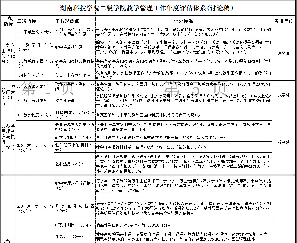 beat365中文官方网站二级学院教学管理工作年度评估体系(讨论稿)