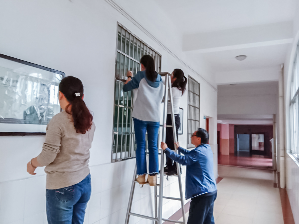 老师和学生利用课余时间打扫寝室和教学区卫生