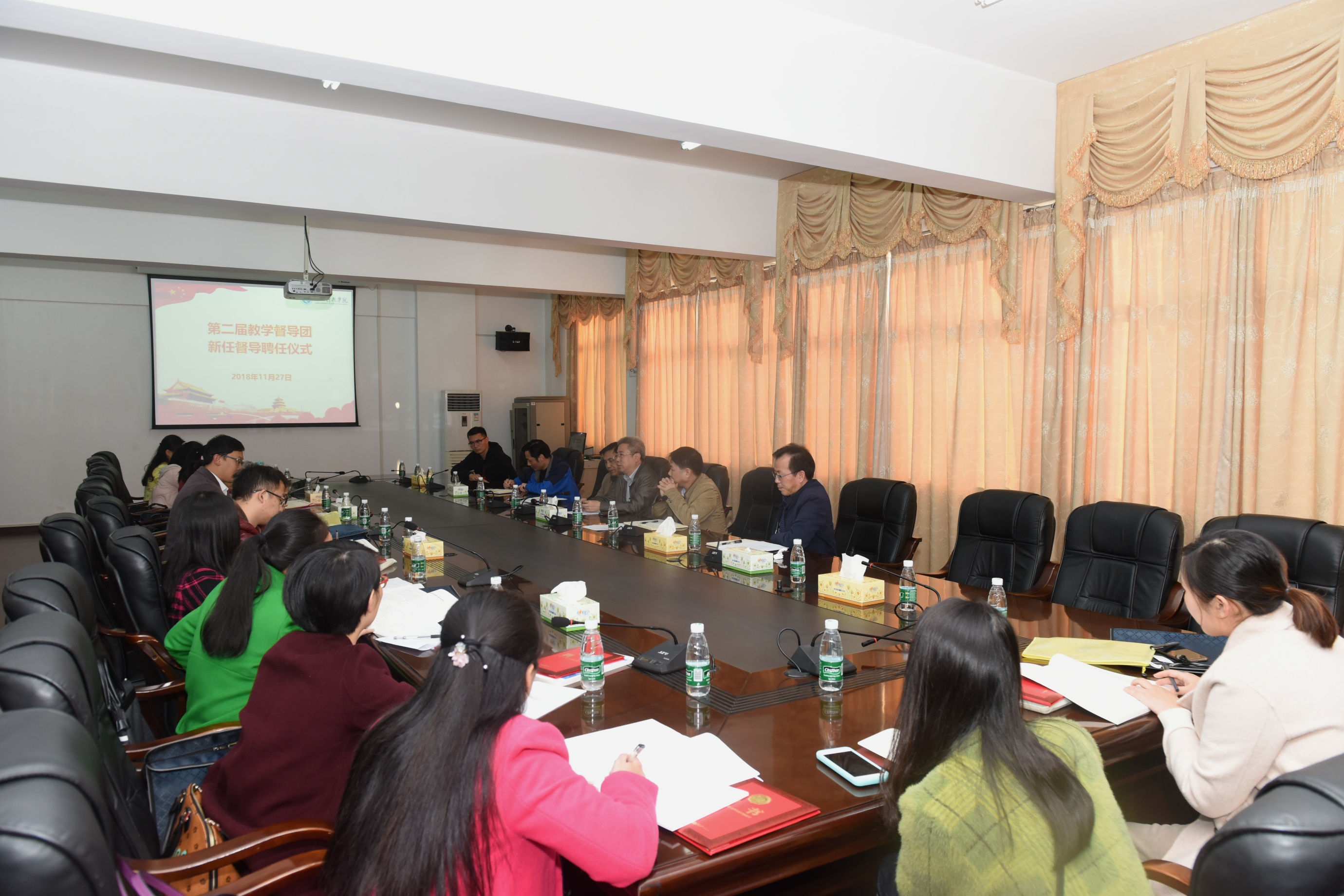 为更好地贯彻落实全国教育大会精神,推进高水平本科教育,11月27日下午,学校举行第二届教学督导团新任教学督导聘任会,校长曾宝成、副校长李常健、教学督导团团长袁先友及教学质量管理处等职能部门负责人参加。