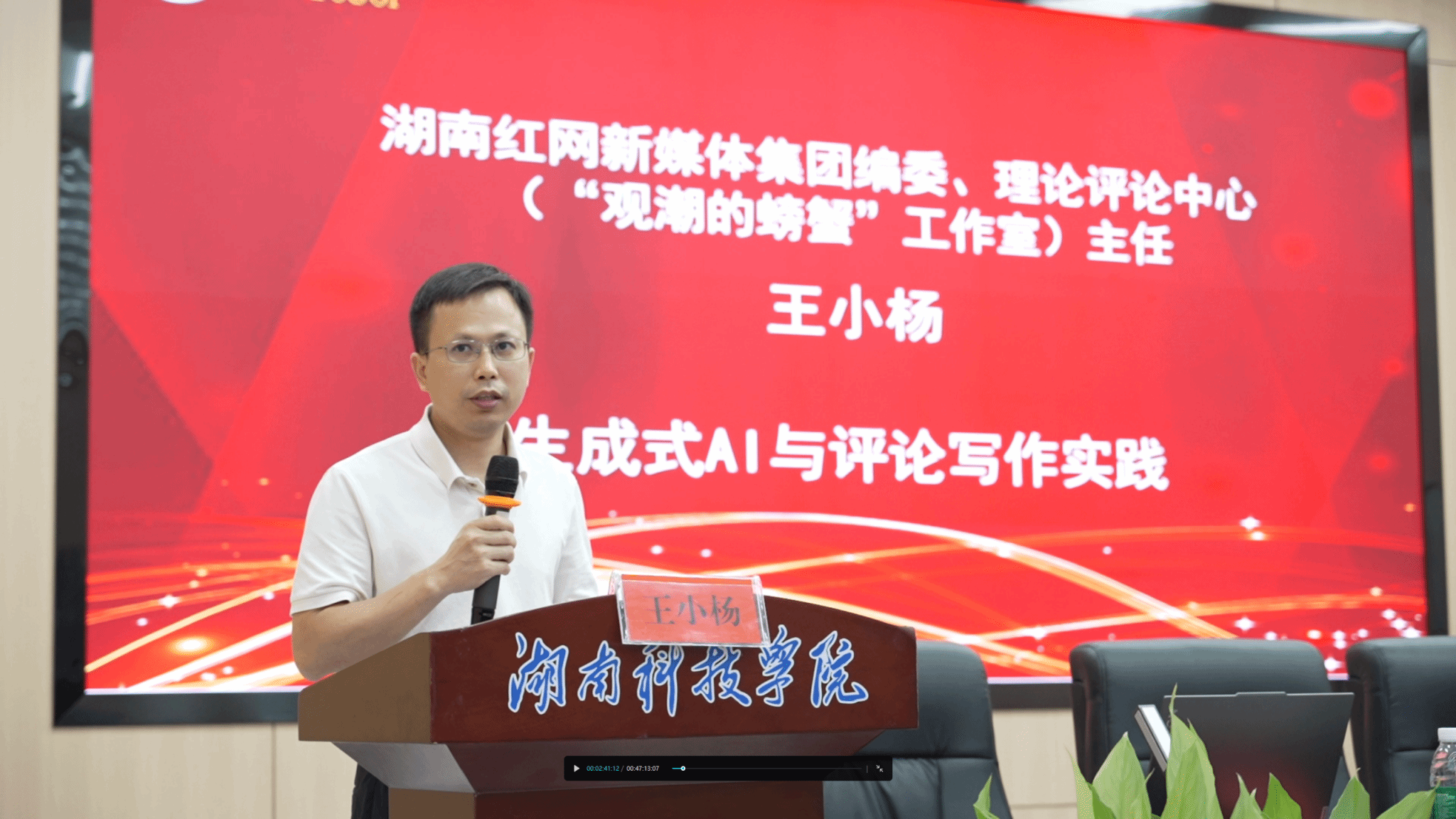 湖南红网新媒体集团编委、理论评论中心(“观潮的螃蟹”工作室)主任王小杨、湖南红网新媒体集团永州站站长周文君、湖南红网新媒体集团理论评论中心(“观潮的螃蟹”工作室)副主任张广蓉等嘉宾,以及宣传统战部、传媒学院主要负责人出席活动,网络与新媒体专业2023、2024级全体学生参与。