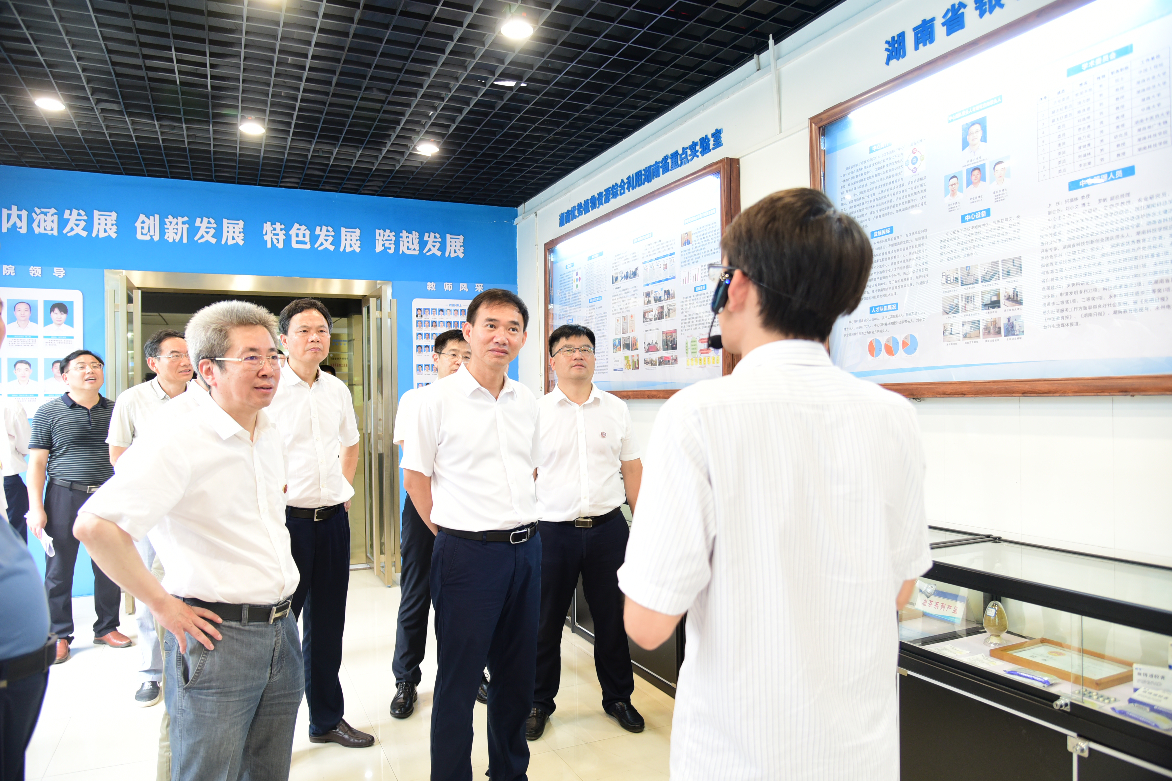 朱洪武走进化学与生物工程学院的多个教学实验室和科研实验室进行察看,实地了解师生教学和教师科研工作条件,该院围绕永州油茶、银杏、瑶药等地方特色做了很多科学研究并初具成果。朱洪武指出,要充分发挥学院人才、智力、科教和文化等优势,以项目为依托,加大科研成果转化为现实生产力的力度,为永州地方经济发展作出贡献。
