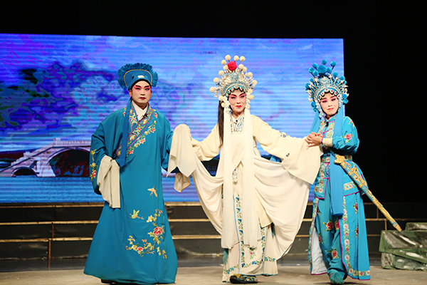 20日晚,表演艺术家们带来的《拦马》、《断桥》、《怀玉山》三场祁剧引得大家好评。《拦马》剧目讲述的是南宋,焦赞将军之弟焦光普流落番邦,开一酒店。一日,遇杨八姐女扮男装探得军情返宋,二人一场误会,澄清后二人共返宋朝的事情 。该戏“唱、念、做、打”并重,上凳、跌凳、扑凳、踩凳表演精湛流畅而吸人眼球。 《断桥》则再现了白素贞与凡人许仙西湖结亲,夫妻开设药店,治病救人,可恨法海从中作梗,使得夫妻二人分开,后多亏小沙弥放许仙下山断桥相会一折的美好故事。《怀玉山》则讲述了红十军团十九师师长王如痴率抗日先遣队一路北上,陷入困境之时,王如痴制造固守山顶假象,让刘勇营长率部分战士成功突围的感人故事。《怀玉山》揭示了无数的热血战士为保卫祖国而献出了自己的生命,令人敬佩。