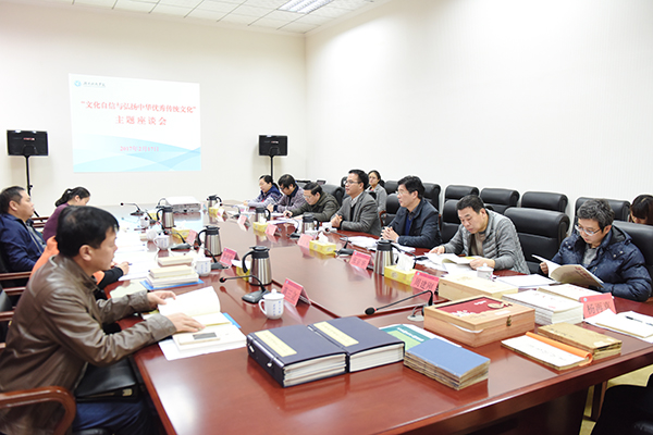 永州市委宣传部副部长蒋三立,beat365官网党委书记陈弘及校领导宋宏福、陈仲庚出席座谈会,座谈会以“文化自信与弘扬中华优秀传统文化”为主题。