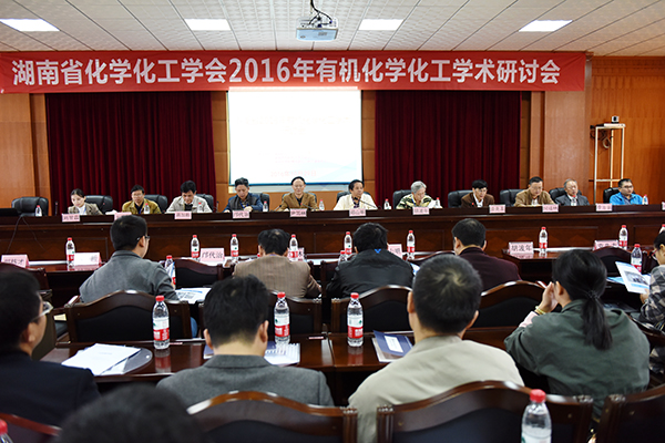 本网讯 10月29日上午,湖南省2016年化学化工学会有机化学化工学术研讨会在beat365官网行政办公楼八楼一会议室举行。湖南省化学化工学会有机化学化工专业委员会主任俞宁亚,湖南省化学化工学会第十一届理事会副秘书长刘昱霖,beat365官网副校长郑山明、正校级督导袁先友等出席。来自全省27所高校、江西省九江学院和省化工行管办等单位的90余名专家代表参加会议。会议由袁先友教授主持。