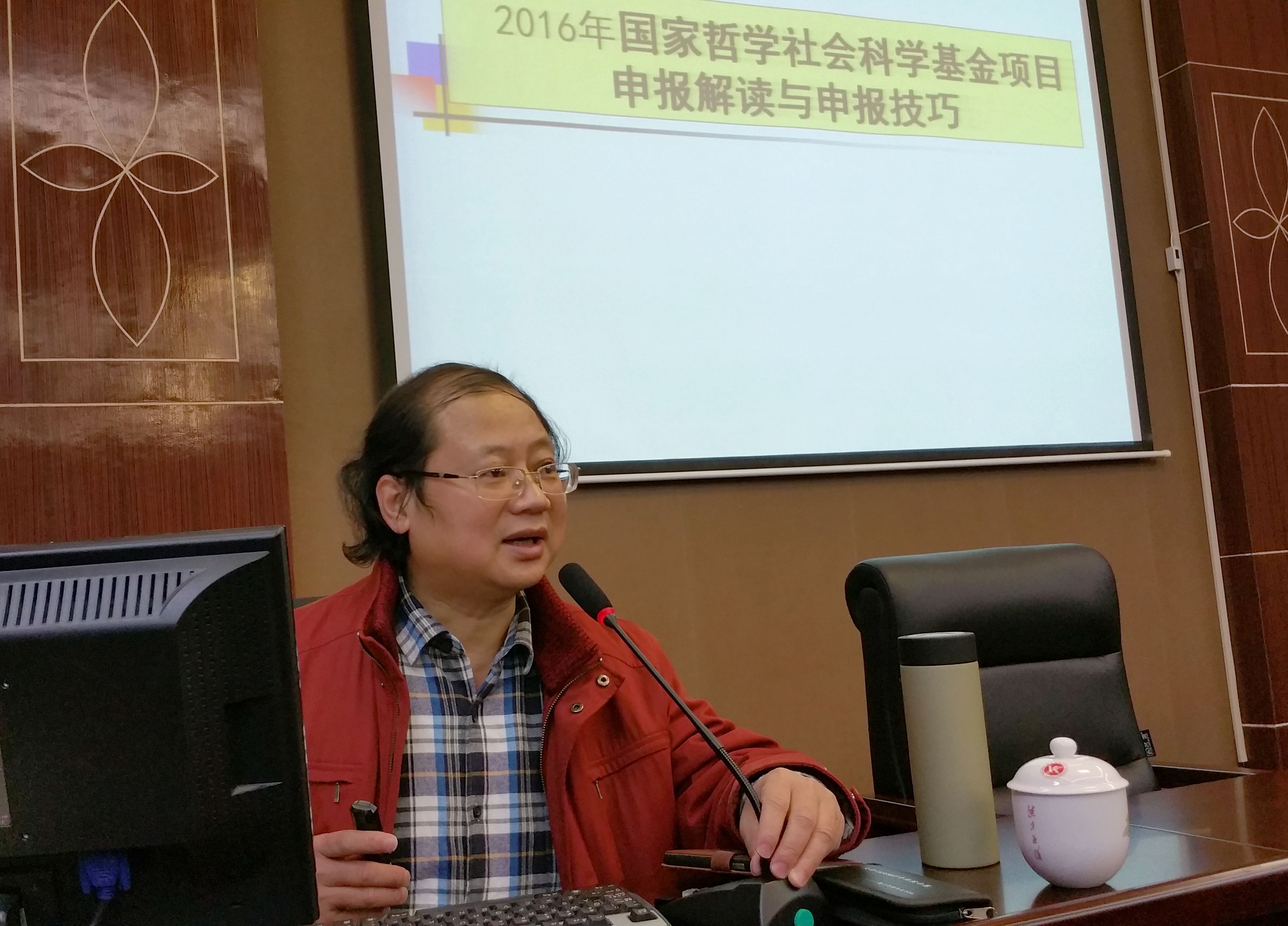 莫道才教授以其三次获得国家社科基金课题(重大项目1项,普通项目2项)的立项经验,为beat365官网作2016年国家哲学社会科学基金项目申报指导。他指出,项目的选题要尽量与申报指南紧扣起来,要突出地方、民族、学科特点,要充分考虑课题组成员的前期成果,要有时代感,要贴近理论前沿,要有全国性意义,要与自己研究领域紧密相关。他还向大家传授了项目论证的技巧,并指出了申报书中常见的问题。他还就《2016年度国家社会科学基金项目申报公告》进行了深入解读。