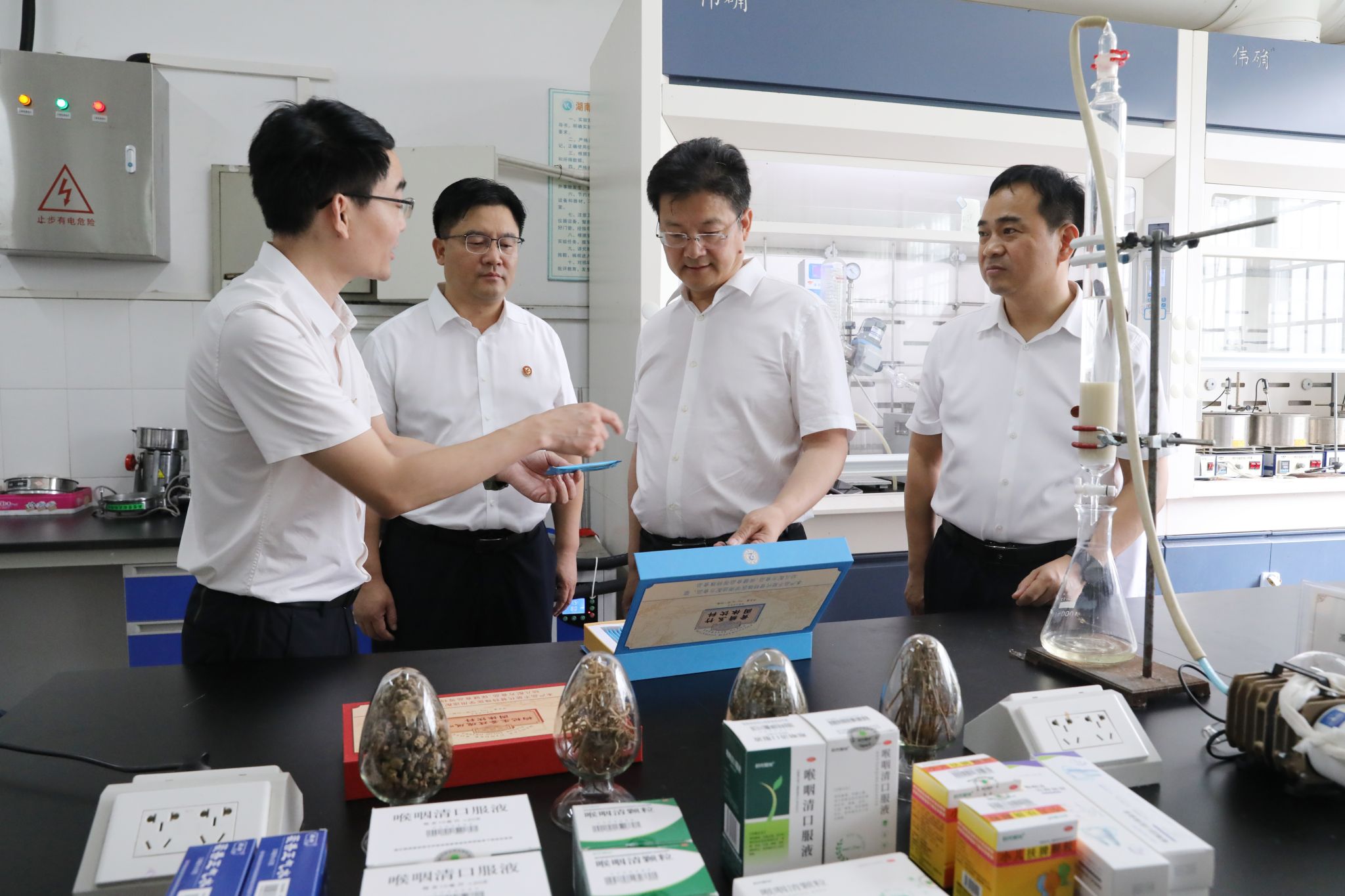 陈爱林一行来到beat365官网化学与生物工程学院,详细了解市十大科技创新项目——“中药大品种培育研究与应用”项目在产品研发、技术创新、转化推广等方面的进展情况。随后召开座谈交流会。陈爱林表示,科技创新是引领高质量发展的强劲动力。要深入开展“政校企”一体合作,支持具有核心竞争力的企业与beat365中文官方网站组建创新联合体,实现共建共享、合作共赢。要坚持企业创新主体地位,聚焦市场需求,引导企业加大研发投入,加强技术攻关,推动“科创链与产业链”融合发展。要精准精细服务企业发展,帮助企业解决实际困难,特别是要帮助专精特新企业提高创新能力,更好发挥引领作用。要大力推进十大科技创新项目建设,以科技创新引领产业创新,不断培育新动能塑造新优势,力争在打造具有核心竞争力的科技创新高地上发出更多永州声音。