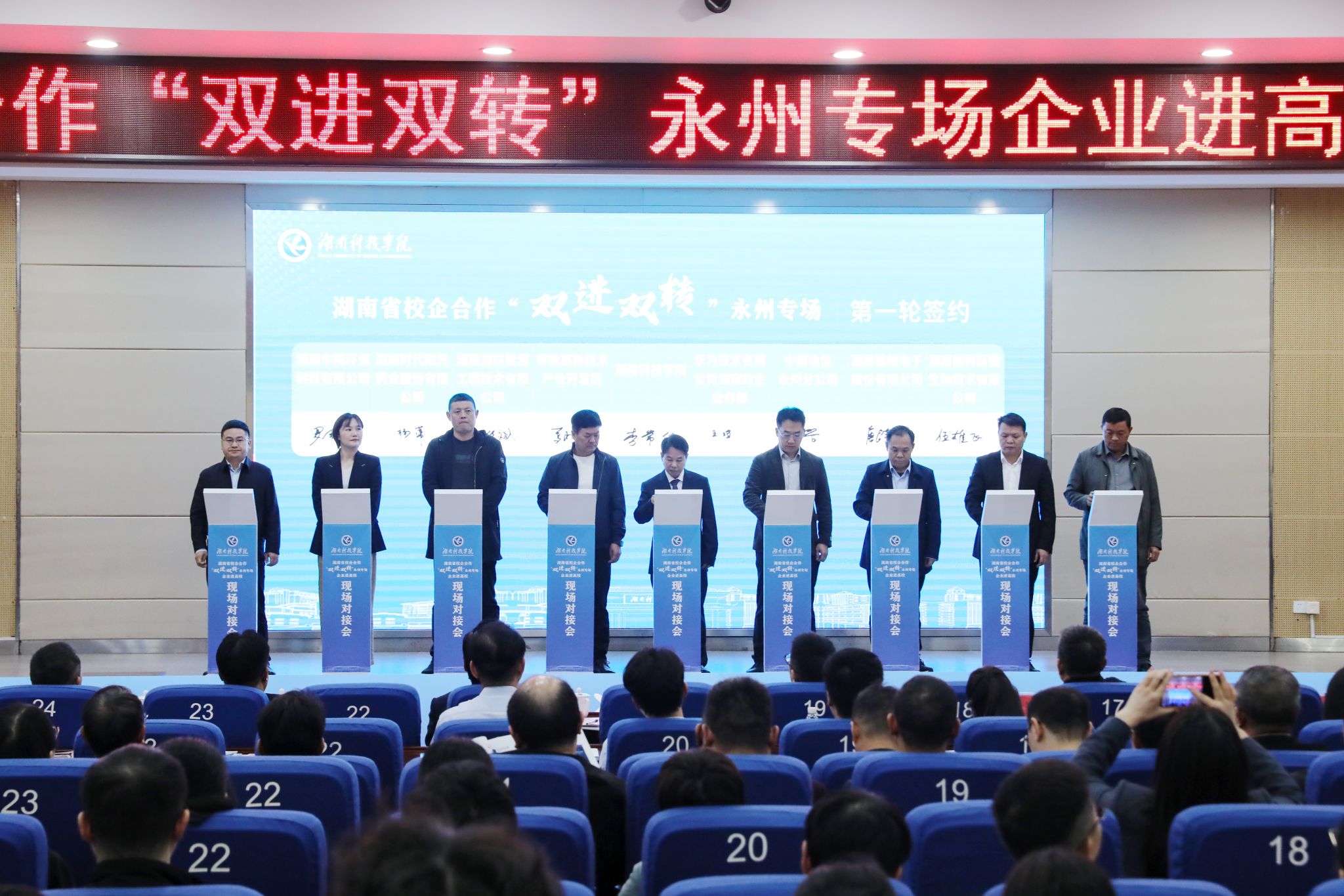 2025年10月,beat365官网举行湖南省校企合作“双进双转”企业进高校现场对接活动永州专场,与湖南中稀环保科技有限公司等16家企事业单位签订产学研合作协议。