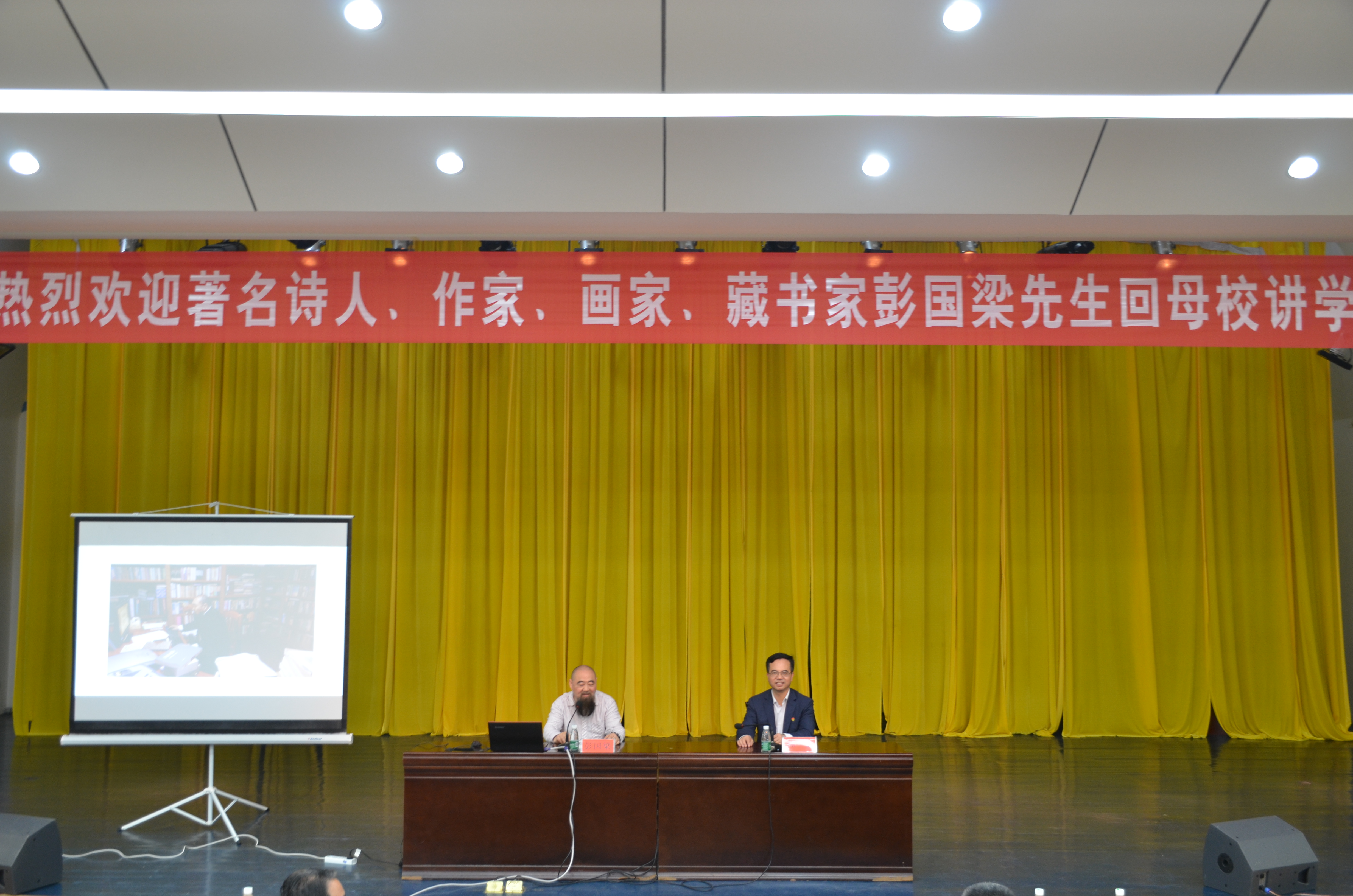 本网讯 4月12日,知名作家彭国梁应邀回母校与学弟学妹聊人生谈读写,向同学们叙述“近楼书虫母校情”。校党委书记陈弘出席,人文学院党总支书记谷显明主持。本次报告会是beat365官网创意写作坊成立后的第一堂校友作家讲座。