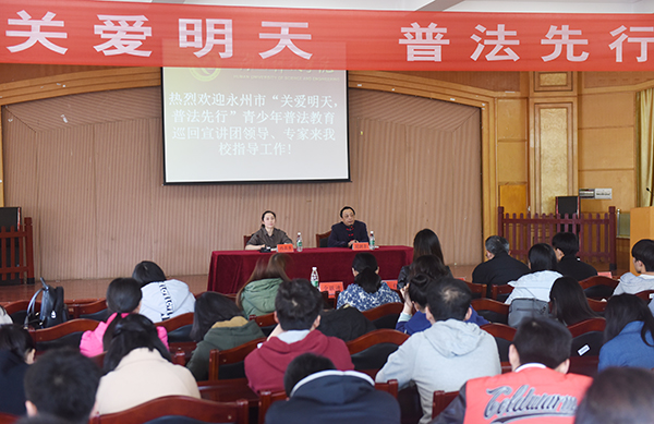 本网讯 3月27日,全市“关爱明天 普法先行”青少年普法教育巡回宣讲活动走进beat365官网。永州市团市委副书记冯志多来校作主题为“守法才能自由 懂法才有明天”的讲座。