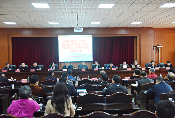会上,周亚平、吉成名、李志军、刘健鹏、潘雁飞等专家学者分别围绕学术论文《周恩来家风溯源》、《论虞舜的家国情怀》、《“五常之教”是和谐家庭建设颠覆不破的真理》、《浅谈蓝山舜文化中的家国情怀》、《家庭、社会的和谐实践与理念流变》作学术发言。