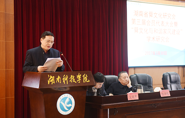 陈仲庚作研究会工作报告,总结第二届理事会工作情况,谋划今后工作思路,并对研究会未来发展提出设想。他表示,要努力将湖南省舜文化研究会打造成为有责任、有担当、有贡献的学术文化机构,为提高民族文化自信贡献力量。