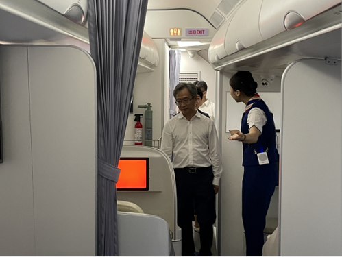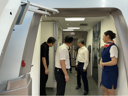 在黄渊基院长的陪同下,李志坚一行饶有兴致地走进航空模拟舱,亲身体验,感受专业化的民航接待礼仪,察看相关民航服务设施设备,并对我院扎实推进校企合作、科技创新、服务地方经济发展的担当精神以及取得的良好科研成果给予了高度赞赏。航管学子们积极向上的精气神、扎实过硬的基本功,同样赢得了在场领导的一致好评。
