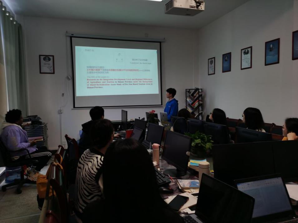 本网讯(通讯员:许彦)4月1日上午,我院潇湘文化旅游与乡村振兴科研兴趣小组在弘毅楼602举办了一场研讨会,本次研讨会采用全英文的方式,由蔡保忠副院长主持,梅西博士点评。