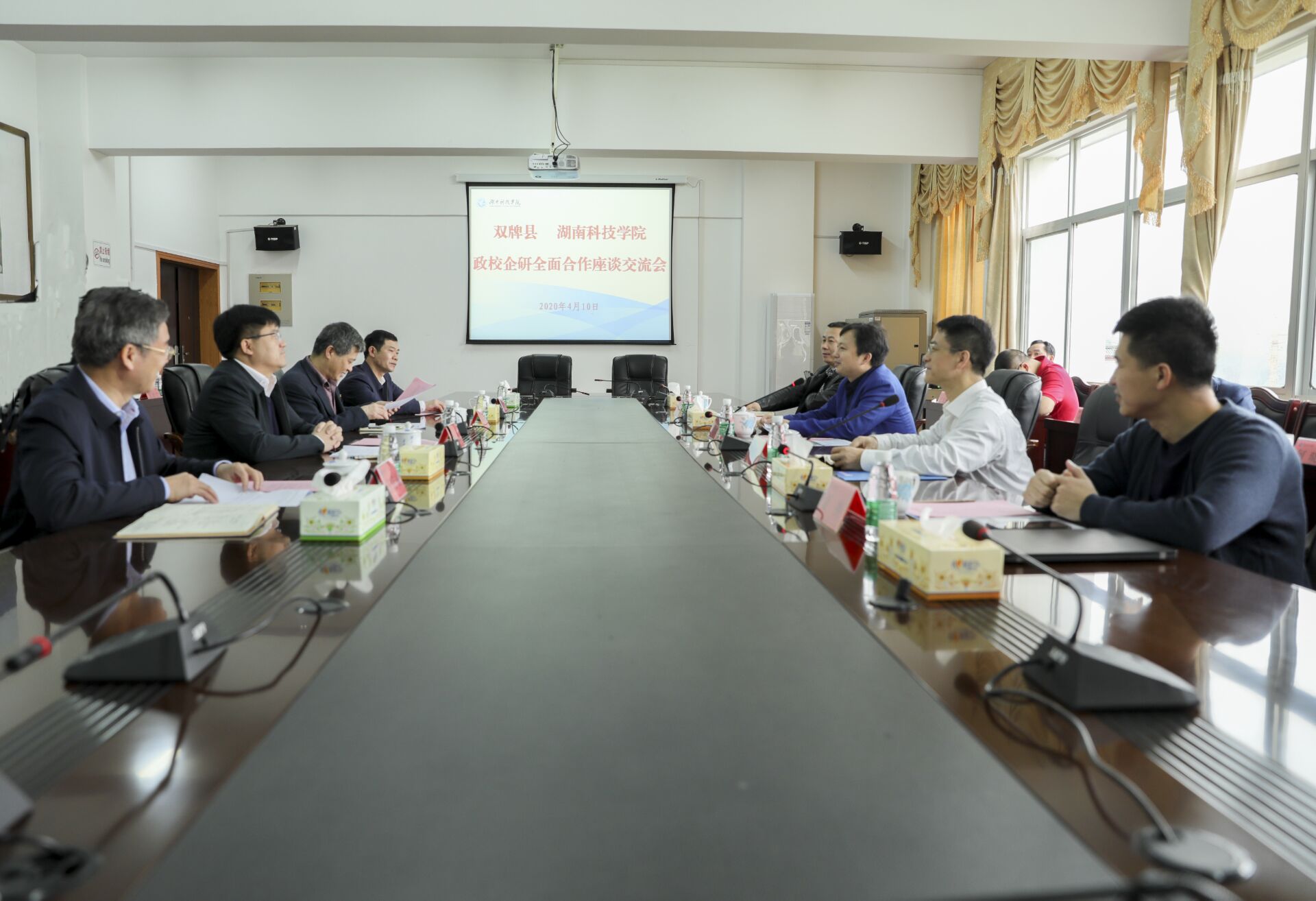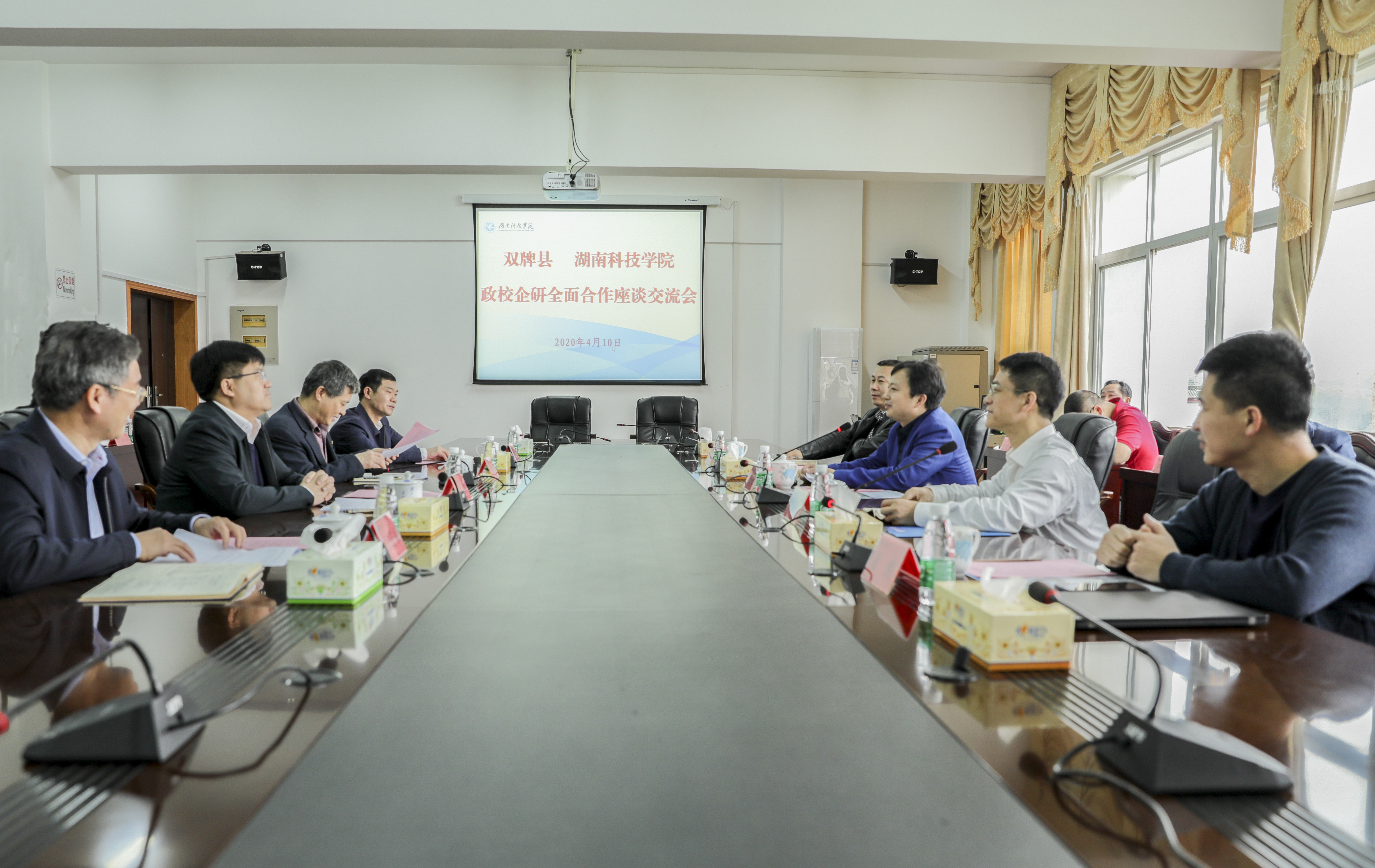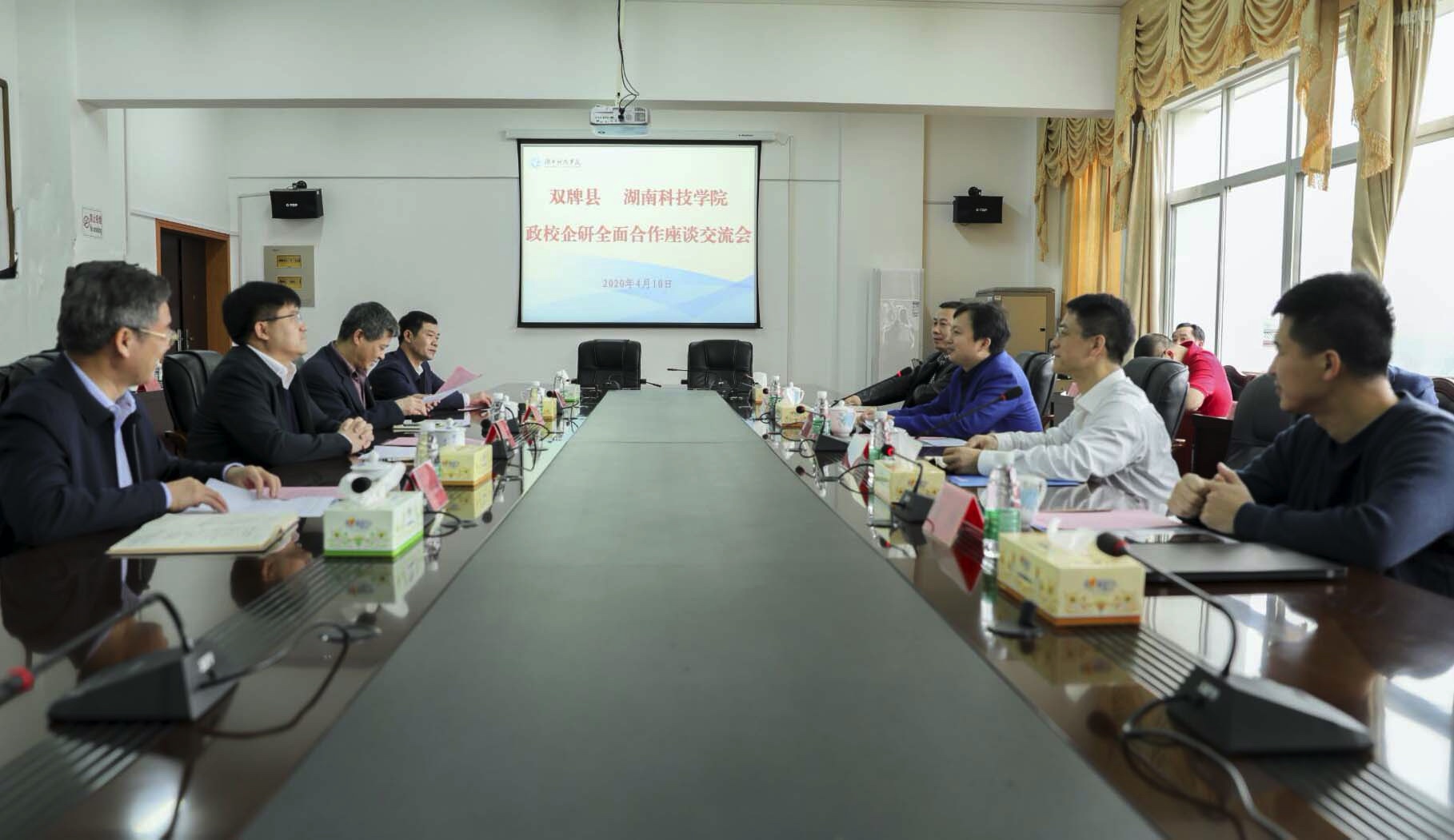 本网讯 4月10日上午,学校与双牌县人民政府签署政校企研全面合作框架协议,积极探索政校企研联动发展新机制。双牌县县委书记苏小康,县委常委、县委办主任王焕金,校长李钢,党委副书记、工会主席唐艳明,副校长宋宏福、吴小林,双牌数字经济产业园首席顾问夏换出席交流会。会议由宋宏福主持。