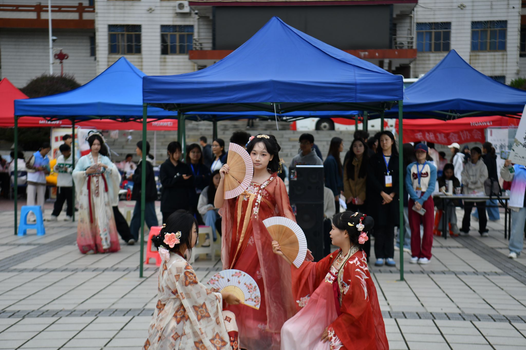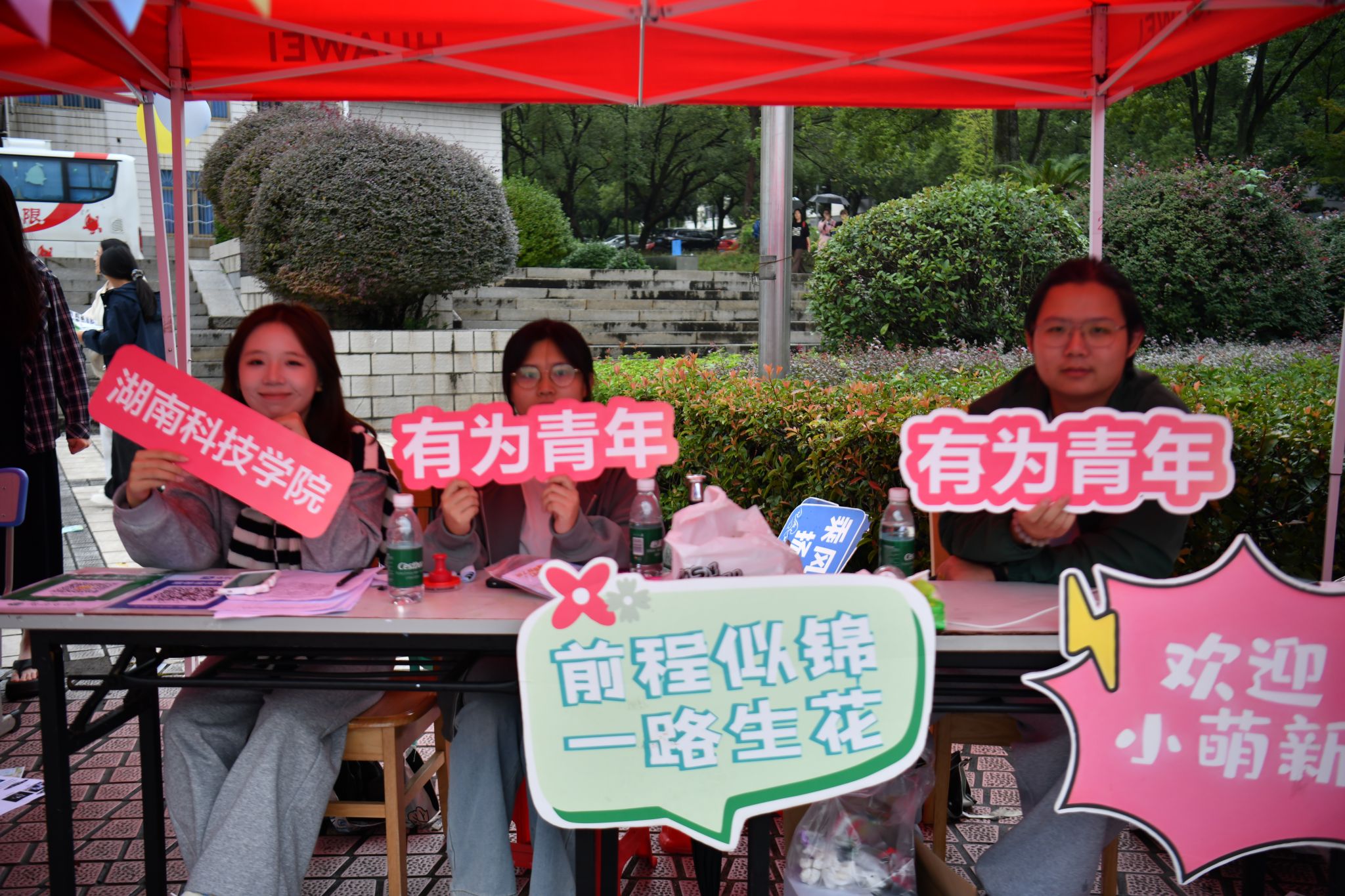 秋雨绵绵,却未浇灭现场如火热情。各社团早早精心布置展位,广场上色彩斑斓,创意展板与表演舞台交织成一道亮丽风景线。才艺展示轮番登场,引得大批新生驻足流连,在各展位前咨询交流,踊跃报名。