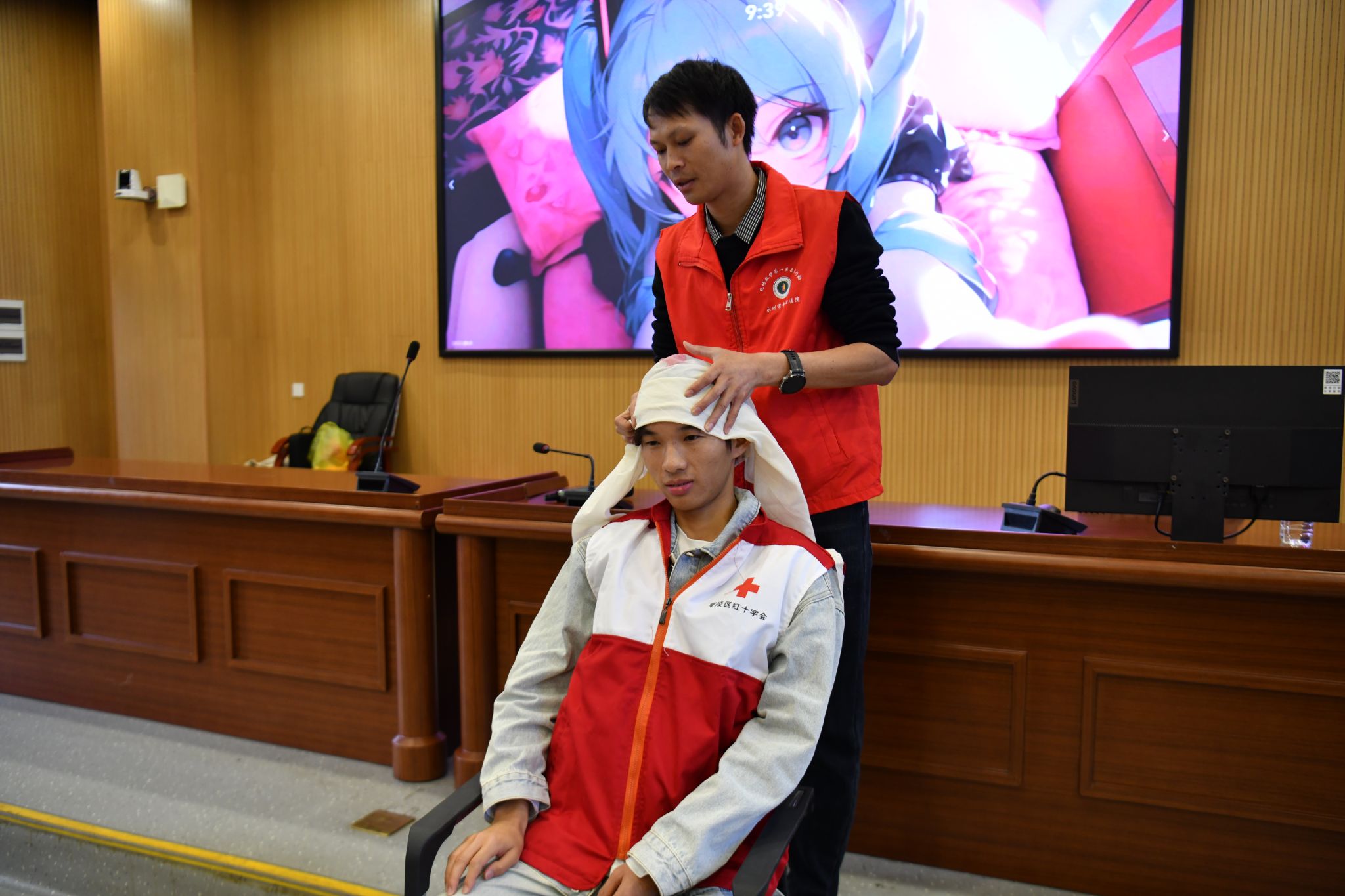 在实操环节,学员们分组在专业指导下进行了高强度、沉浸式的技能演练。指导老师“手把手”纠正每一个细节,确保动作的规范与有效。通过在心肺复苏模拟人上反复练习、模拟使用AED设备、相互进行创伤包扎,学生们不仅熟练了技术,更培养了在紧急情况下担当施救“第一目击者”的冷静与自信。