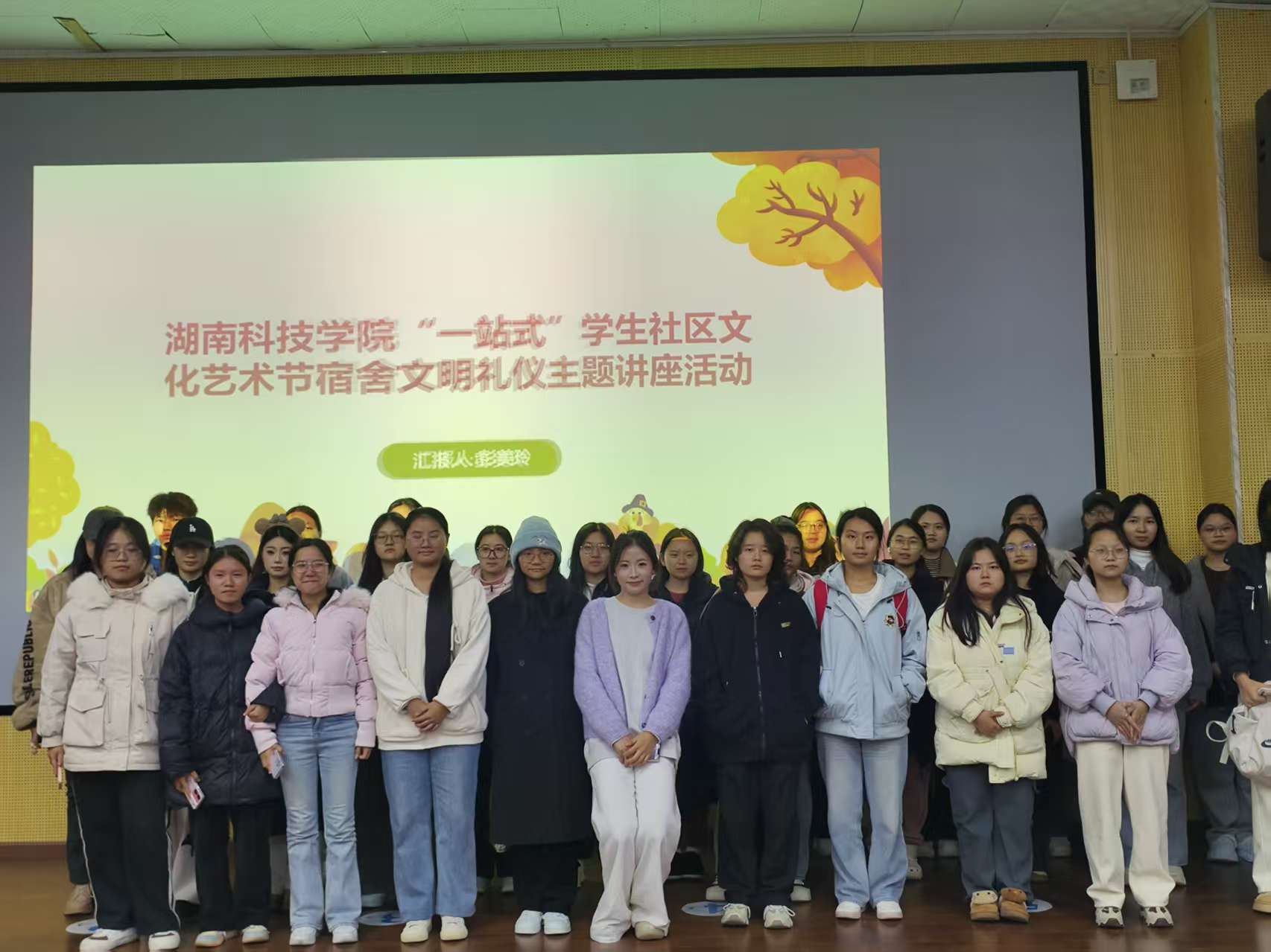 为培育学生宿舍文明素养,筑牢和谐温馨的住宿环境,2025年12月17日晚,beat365中文官方网站第三届“一站式”学生社区宿舍文明礼仪专题讲座在博雅楼西三顺利举办。本次活动以“雅舍共守,礼伴同行”为主题,吸引全校数百名学生踊跃参与,现场氛围热烈融洽。