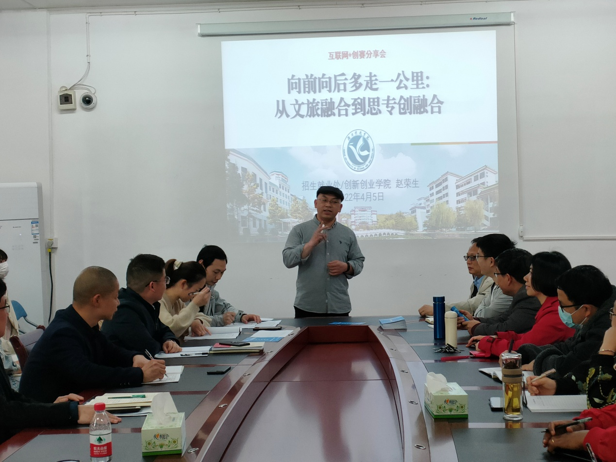 (通讯员 田勤)为第八届beat365中文官方网站“互联网+”大学生创新创业大赛暨湖南省赛选拔赛营造良好氛围,结合学校教师发展中心安排,根据我院学科专业特点,2022年4月5日邀请招生就业处副处长(创新创业学院副院长)赵荣生来院就大赛申报进行专业辅导。赵老师自2003年以来,辅导了22个创新创业项目获得省级以上奖励。其中“互联网+”全国金奖1项,铜奖5项。受教育部邀请2020年、2021年担任“互联网+”国赛评委。赵老师以《向前向后多走一公里:从文旅融合到思专创融合》为题,与我院师生分享了获奖心得,对项目推进的关键因素进行解读,并结合我院专业特点给予相应建议。