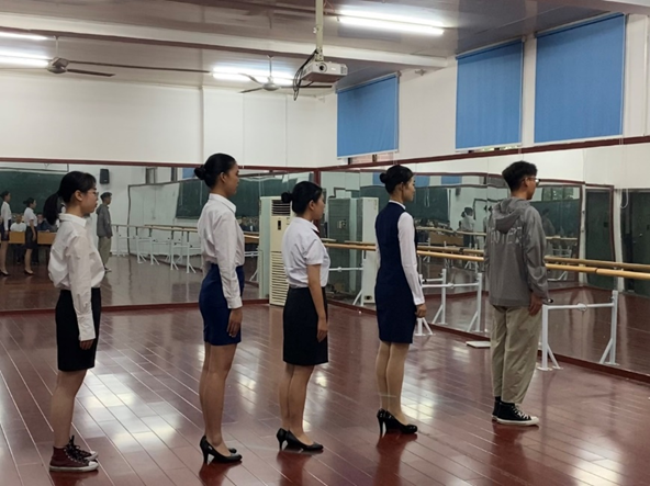 复测的各项工作有序开展,评委老师根据考生形象、专业素质、才艺表演等方面进行综合评价。在航空服务的过程中,需要对乘务人员的外形、服饰、发型、沟通能力以及基本的行走、站姿和转身等动作规范做严格要求。