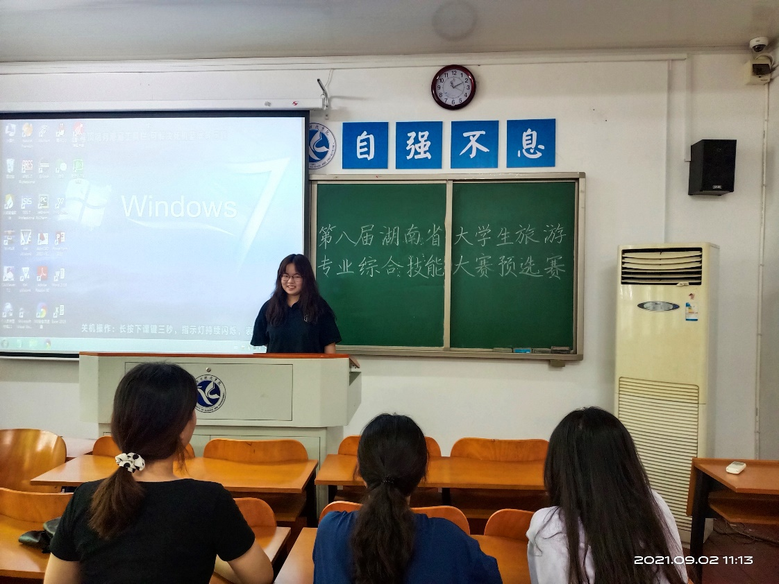 本次预选赛主题为大学生红色旅游策划创意,为依托进行选拔,本次竞赛分为专业组和综合组参赛,此次比赛旨在选拔优秀学子参加2021年第八届湖南省大学生旅游专业综合技能大赛,继续为学校赢得荣誉。选拔赛分为专业组和综合组,共计52位同学参赛。赛场上同学们表现亮眼,其中彭馨漪、张真绮、周文霞、李梦玲和王文玉等同学引人入胜的讲解或展示给老师和同学留下了深刻印象,充分展现了优秀大学生风采。