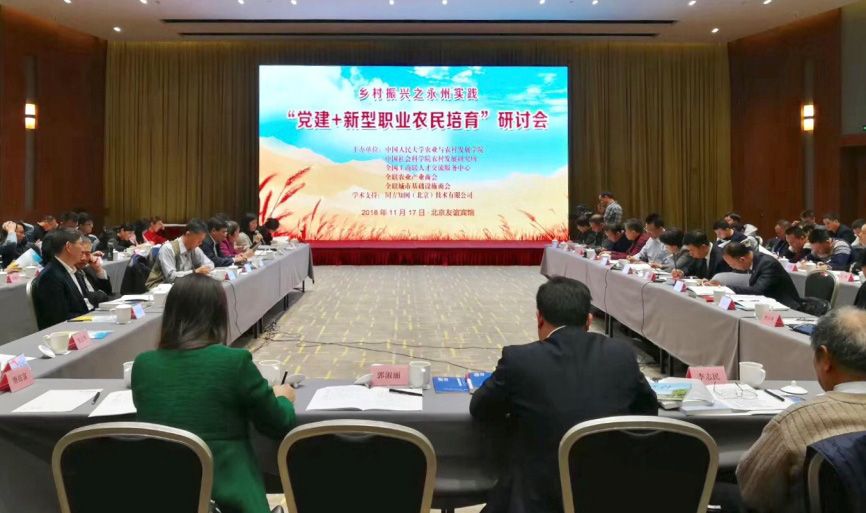 本网讯 11月17日,由中国社会科学院农村发展研究所、中国人民大学农业与农村发展学院、全国工商联人才交流服务中心等单位主办的“乡村振兴之永州实践——‘党建+新型职业农民培育’研讨会“和“2018全国新型职业农民培育发展高峰论坛“在北京召开。会议以助推脱贫攻坚、实现乡村振兴为主题,就“党建+新型职业农民培育”永州地方样本进行总结研讨。与会领导、专家学者认为,永州“党建+新型职业农民培育”模式在全国可借鉴、可复制、可推广。