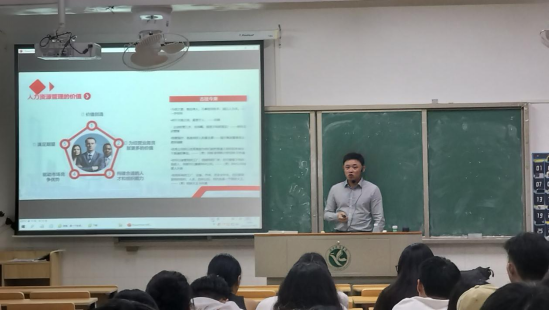 活动中,吕老师首先给同学们提出人力资源管理的思考题,让同学们对人才资源管理有了初步的了解。随后,列举了毛泽东、邓小平、江泽民、胡锦涛、习近平在不同时代的适应时代要求的人才思想,强调了人才资源的重要性。吕老师通过四个生动的案例分析,同学们对团队合作以及人才的重要性认识更加深入。