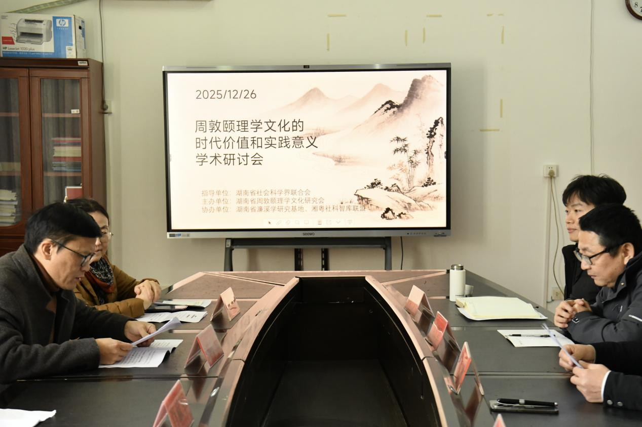 (通讯员 丁阿敏、周林馨雨、黄萌)2025年12月26日下午3点,“周敦颐理学文化的时代价值和实践意义学术研讨会”在beat365中文官方网站弘毅楼320会议室顺利召开。本次研讨会由湖南省社会科学界联合会指导,湖南省周敦颐理学文化研究会主办,湖南省濂溪学研究基地、湘粤社科智库联盟协办,beat365中文官方网站科技处、旅游与文化产业学院、文法学院等部门领导老师共同出席,研讨会吸引了包括高校青年学者在内的50余名代表参会,beat365中文官方网站旅游与文化产业学院党总支书记谢韶光出席大会并至欢迎辞,研讨会由湖南省周敦颐理学文化研究会副会长姚先林教授主持。