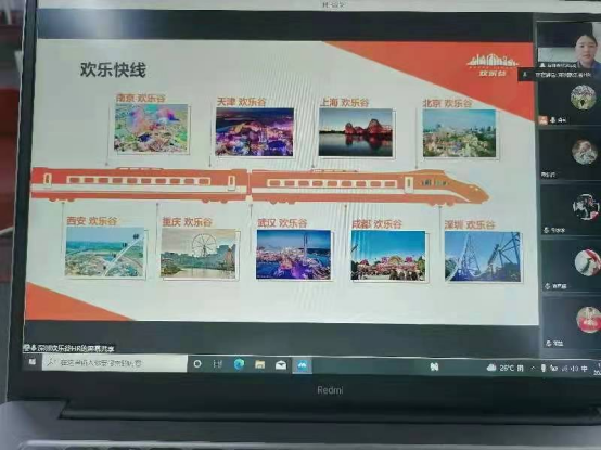 在与深圳华侨城欢乐谷旅游公司视频会上,陈灿军简要介绍了学校及旅游与文化产业学院的发展历程和办学成果。深圳欢乐谷人力资源经理杨颖介绍了央企华侨城下属欢乐谷的概况、企业文化、产业规模及产业格局,还详细讲解了企业对毕业生的培养,介绍了关于应届大学生“三年双师”的培养计划以