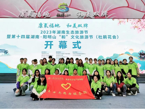 2023年湖南生态旅游节暨第十四届湖南•阳明山“和”文化旅游节(杜鹃花会)开幕式在阳明山举行。学院受双牌县人民政府邀请,选拔了60余名同学在活动中担任志愿者,同学们以高度的责任感,过硬的专业水平,出色完成了讲解任务等,为传播阳明山的山水人文积极贡献力量,活动结束后,组委会特地给学校发来感谢信,对参与讲解和志愿者工作的同学给予了称赞和肯定。
