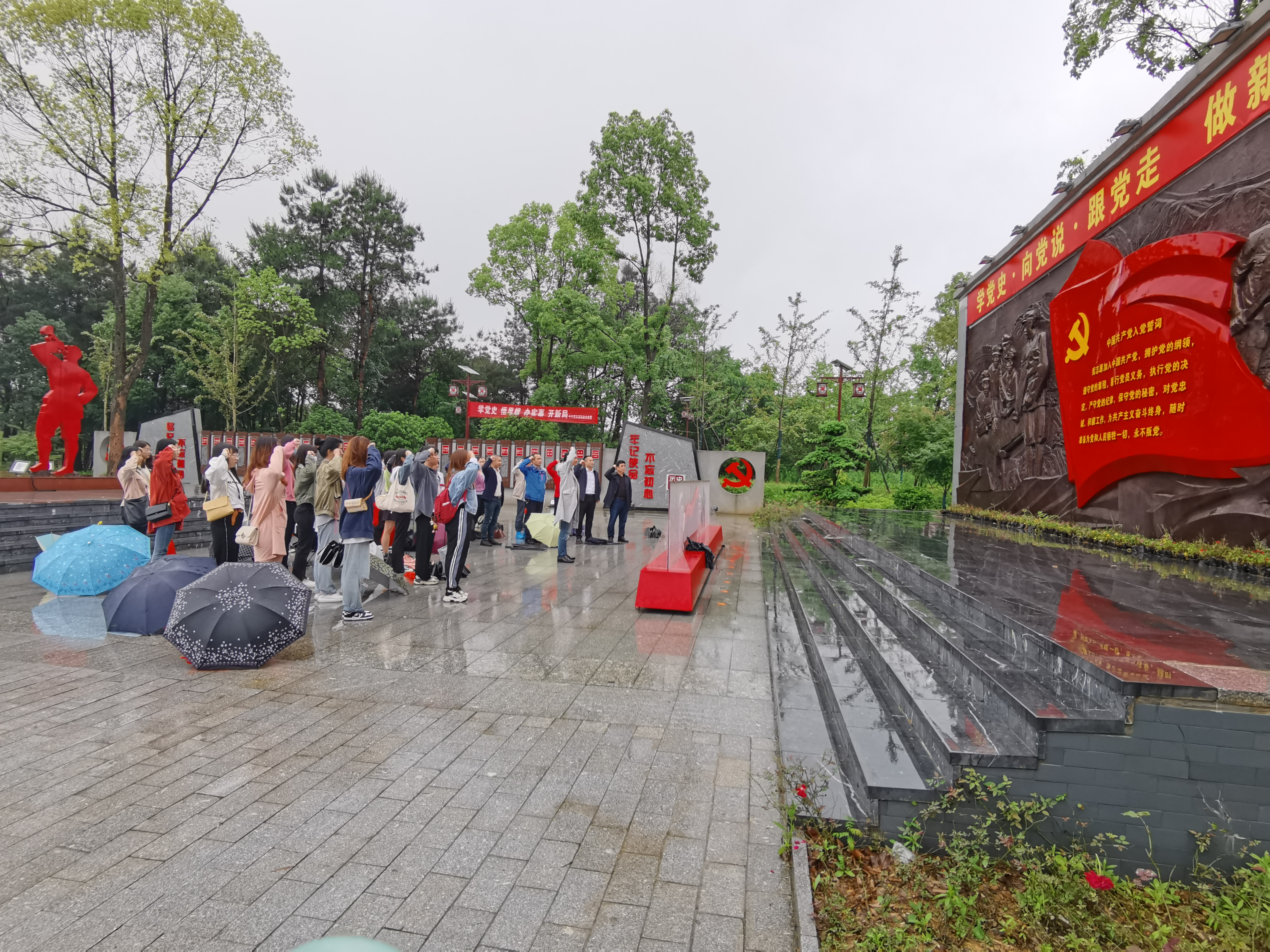 重温红六军团西征转战永州期间留下的红色印记,回望那段艰苦卓绝的长征历程,在场的师生党员无一不动容,冒着细雨,在红星广场庄严宣誓,重温入党誓词。