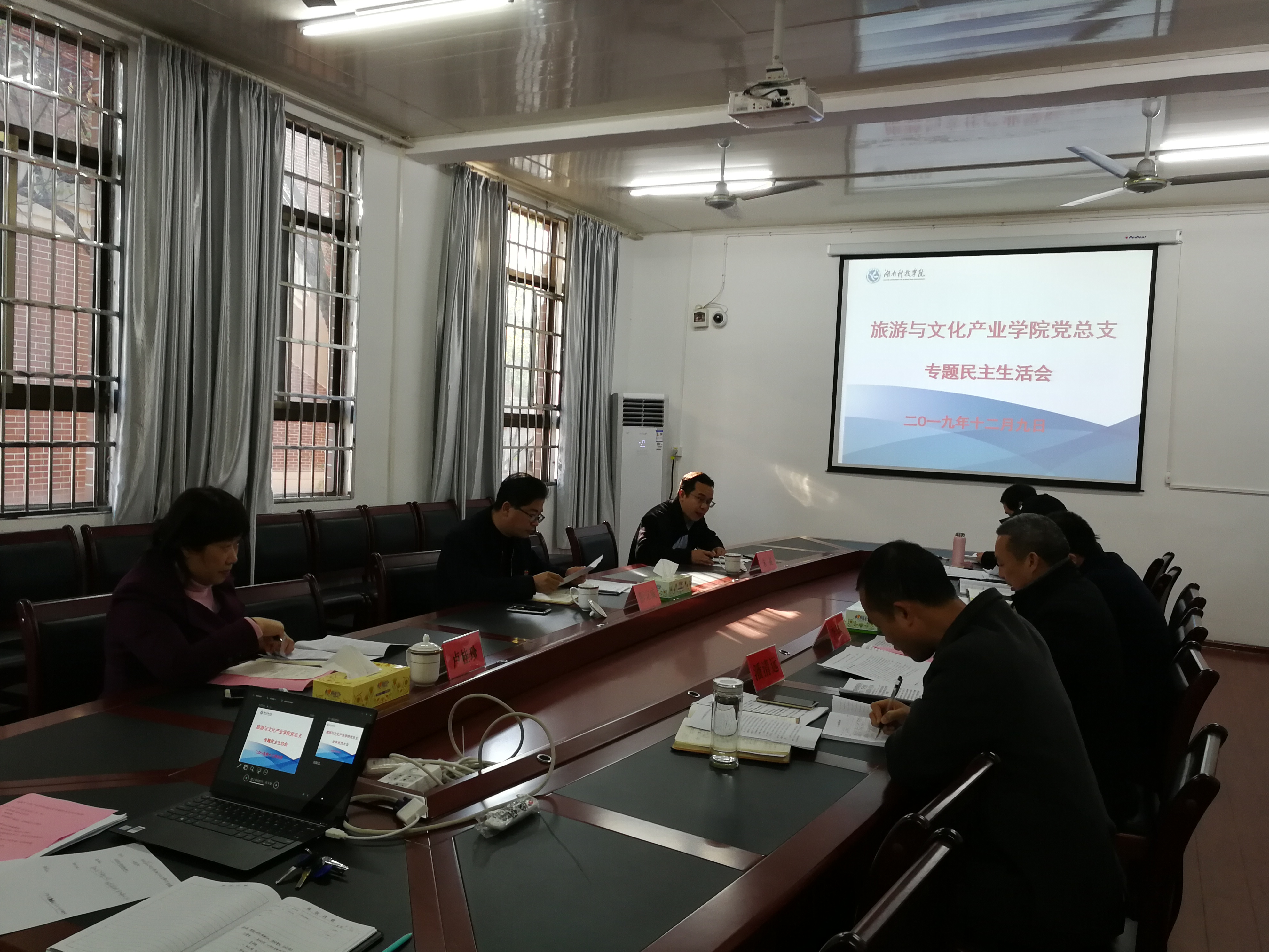 本网讯 12月9日下午,根据《关于认真召开2019年度基层党组织专题民主生活会、专题组织生活会和开展民主评议党员工作的通知》(湘科院教组发〔2019〕6号)文件精神以及中共beat365中文官方网站委员会“不忘初心、牢记使命”主题教育领导小组办公室的工作指示,学院在荟英楼306召开2019年度专题民主生活会,学院班子成员参加,党总支其他非处级干部委员列席参加。学校党委委员、纪委书记彭立威及联络员朱晶,学校主题教育指导工作组第二指导组组长卢桂珍到会指导。