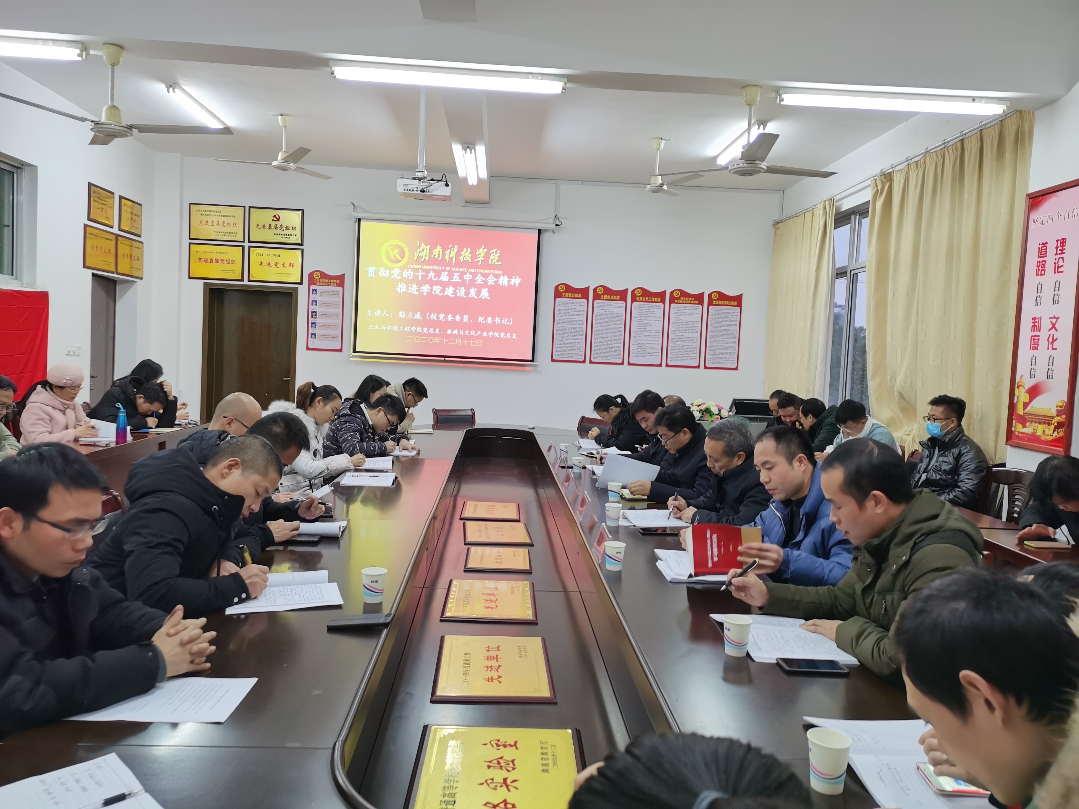 本网讯  为深入学习贯彻党的十九届五中全会精神,1217日下午,校党委委员、纪委书记彭立威同志在逸夫楼213为联系的土木与环境工程学院、旅游与文化产业学院上党课。两个学院的全体教职工党员参加,党课由土木与环境工程学院党总支书记张俭民主持。