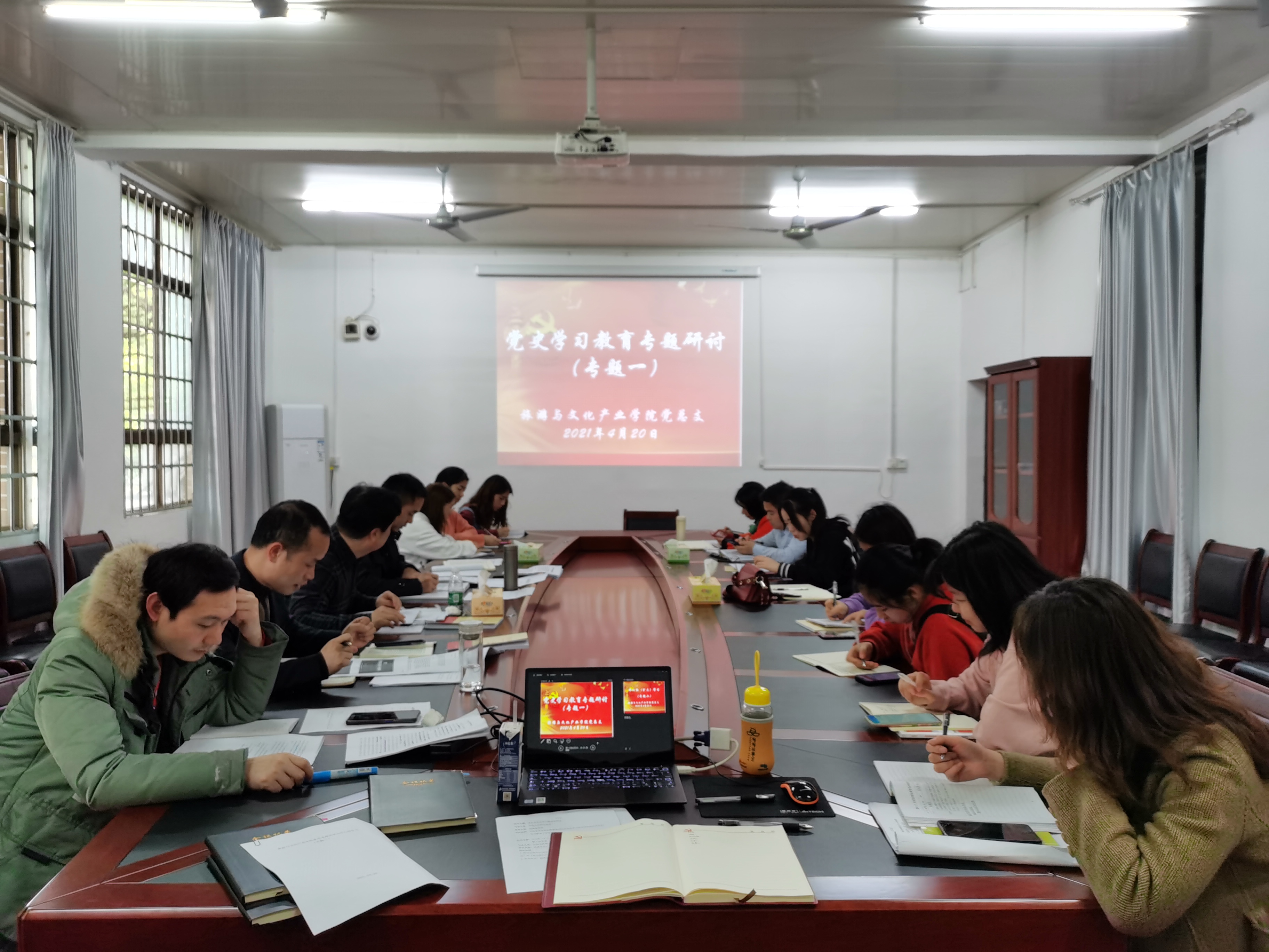 在党史学习教育第一次专题研讨学习中,学院党总支副书记、副院长潘清远领学了习近平总书记在党史学习教育动员大会上的讲话以及《论中国共产党历史》,杨再喜同志等做个人学习体会发言。
