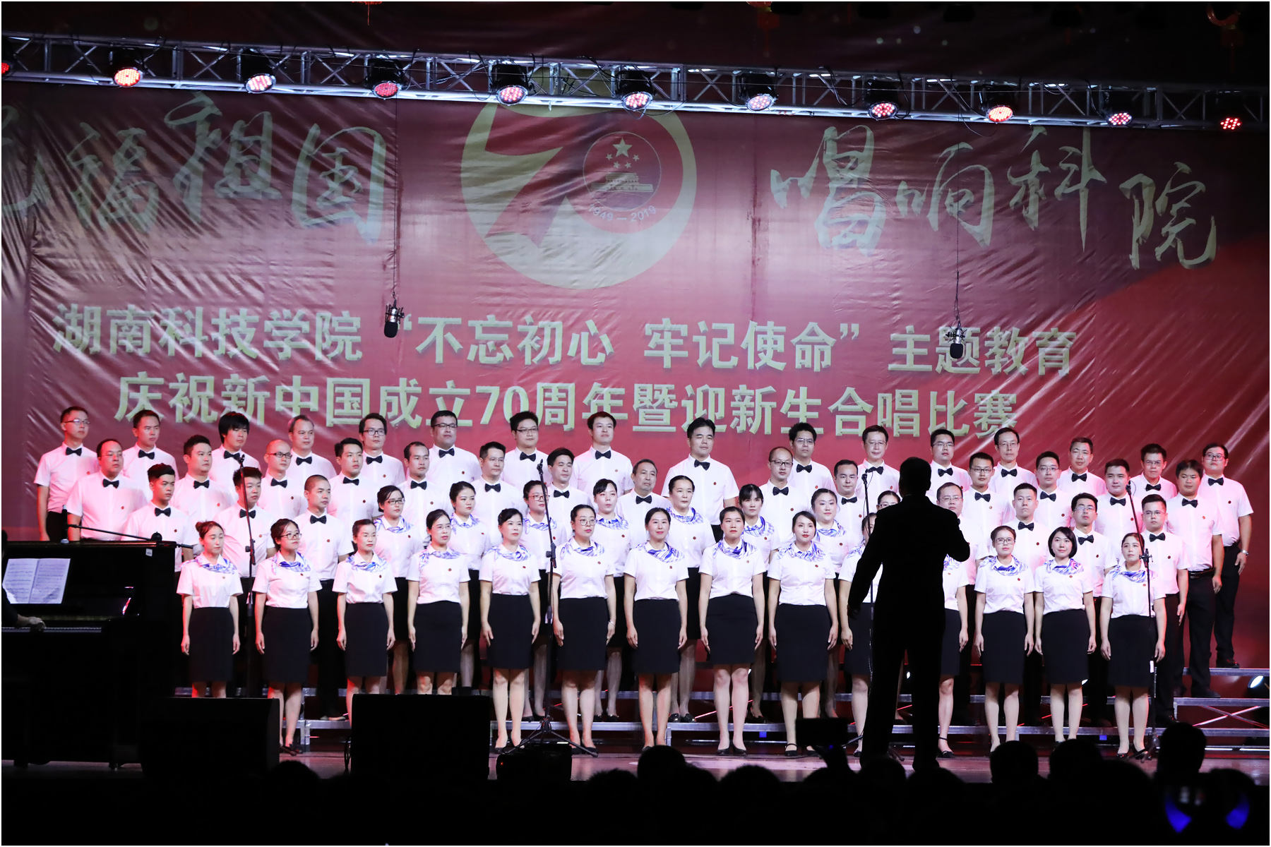 本网讯 9月29日晚,beat365中文官方网站“不忘初心,牢记使命”主题教育,“祝福祖国 唱响科院”庆祝新中国成立70周年暨迎新生合唱比赛在体育馆落下帷幕,我院教职工所在的第四分团获一等奖。