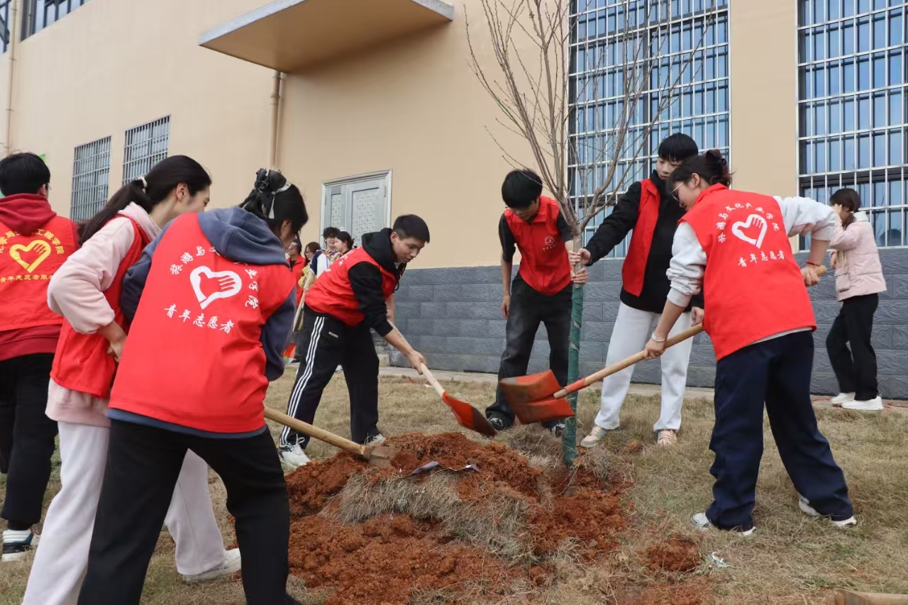 活动当天,师生们热情高涨,分工协作。曾旎老师作为活动总协调,带领学生规划种植区域,强调科学植树的重要性,寓意着廉洁建设也要遵循一定的原则,如同科学植树般不可偏差;李满老师现场示范栽种技巧,讲解树木养护知识,借此暗示廉洁品德需要悉心培育和长久维护;李思雨老师则组织学生分组行动,确保活动高效有序,这正如在廉洁工作中,有序的组织和协作能更好地推动廉洁之风的形成。挥锹挖坑、扶苗培土、提水浇灌……师生默契配合,短短两小时便成功栽种数几棵樱花树苗。