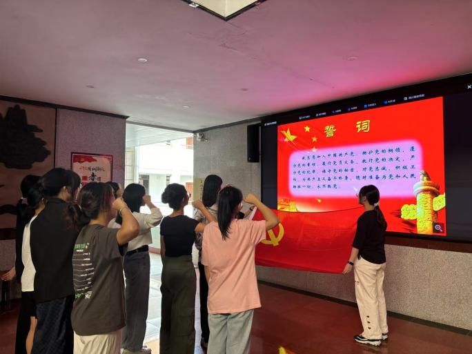 活动以“红色领航·廉润初心”为主线展开。在博物馆内,党员们跟随讲解员的脚步,透过青铜器、陶瓷器触摸千年文脉,从周敦颐《爱莲说》廉政典故中汲取精神养分。在革命烈士纪念馆,革命先烈抛头颅洒热血的壮举令众人动容。在鲜红党旗下,新党员们佩戴徽章,举起右拳庄严宣誓,铿锵誓言与历史回响共鸣共振。