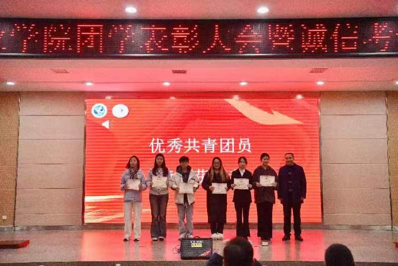 大会第一项议程由学工办辅导员李满老师宣布优秀共青团员、奖学金及优秀运动员等奖项获表彰学生名单,在大会主持人组织下,由会场领导、老师为获奖学生颁发荣誉证书。