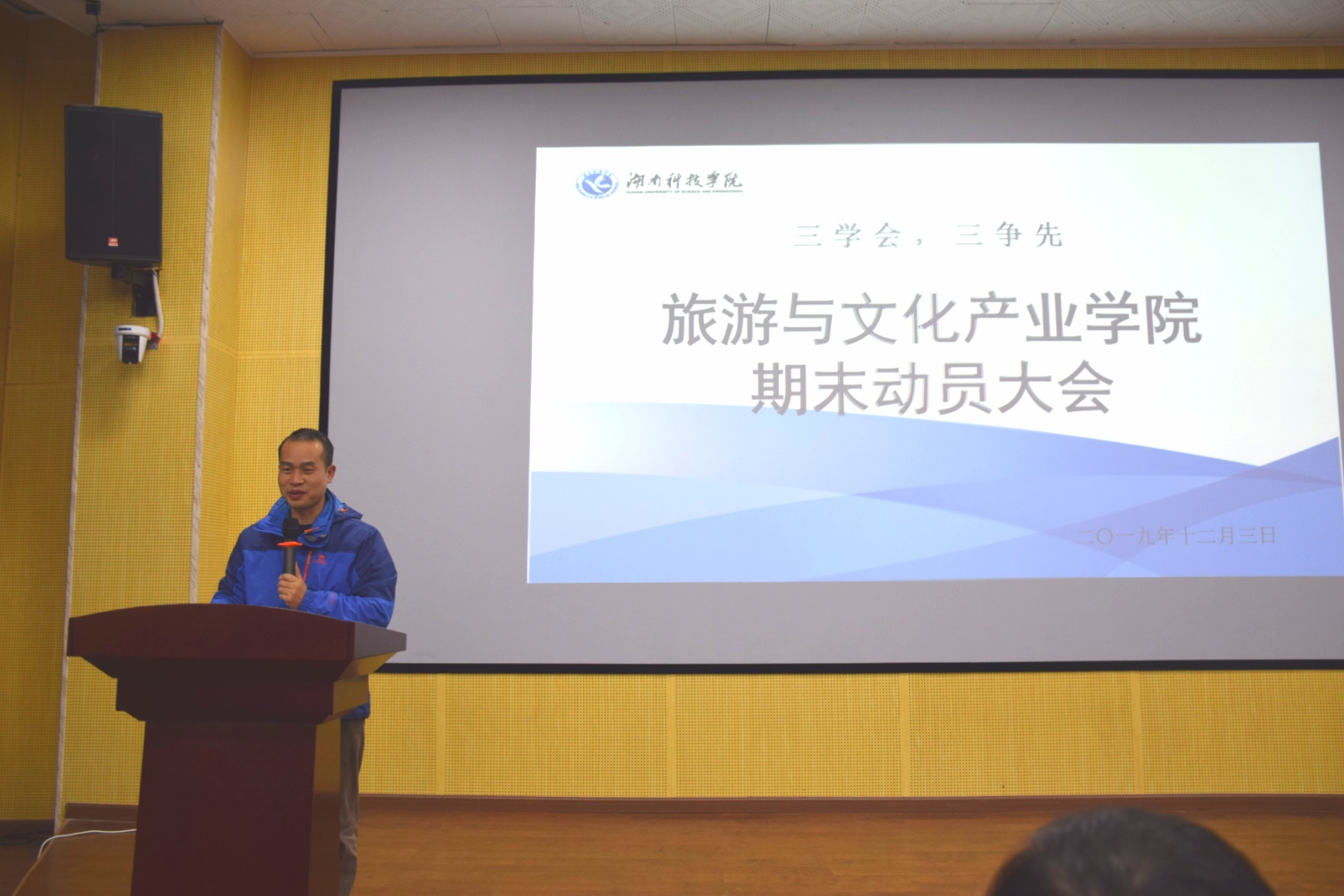 本网讯(通讯员 周文霞)12月3日晚,我院于博雅楼西三举行期末考试动员大会,院长黄渊基、党总支副书记潘清远出席会议,会议由学工办副主任肖可主持。全体学生参加会议。